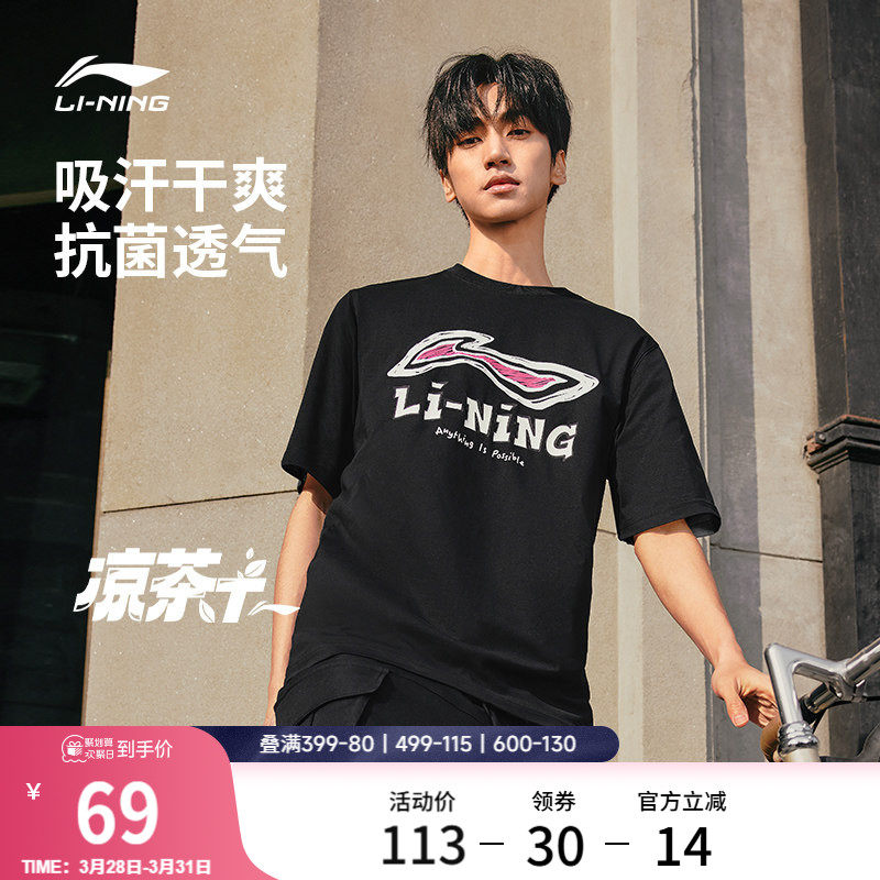 李宁短袖男士春夏官方半袖装运动上衣男装体恤宽松黑色T恤