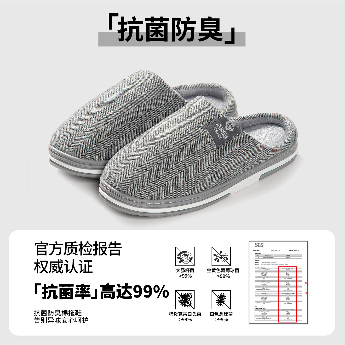 洁丽雅男士棉拖鞋老人大码秋冬季防滑保暖毛绒拖鞋女冬天防臭舒适