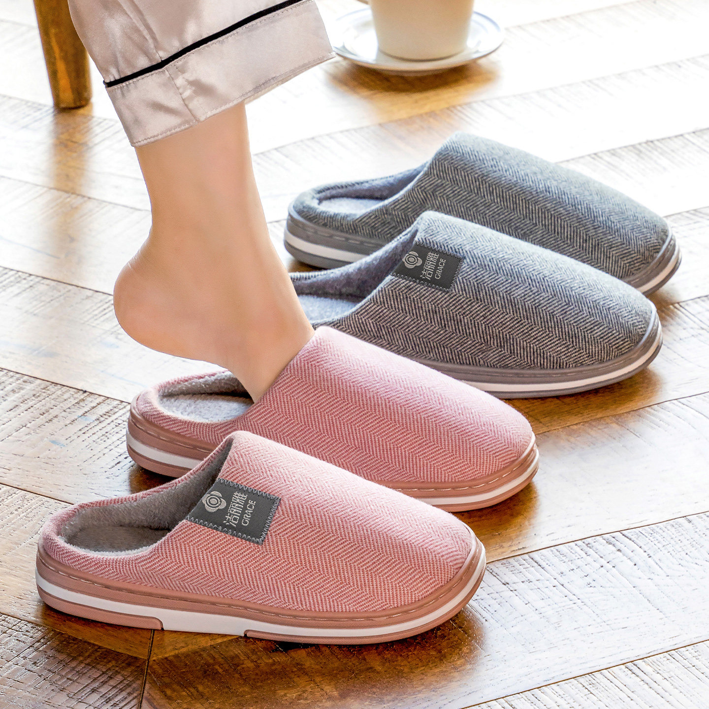 朴西棉拖鞋女士秋冬季厚底简约保暖室内居家用软底防滑情侣棉拖男