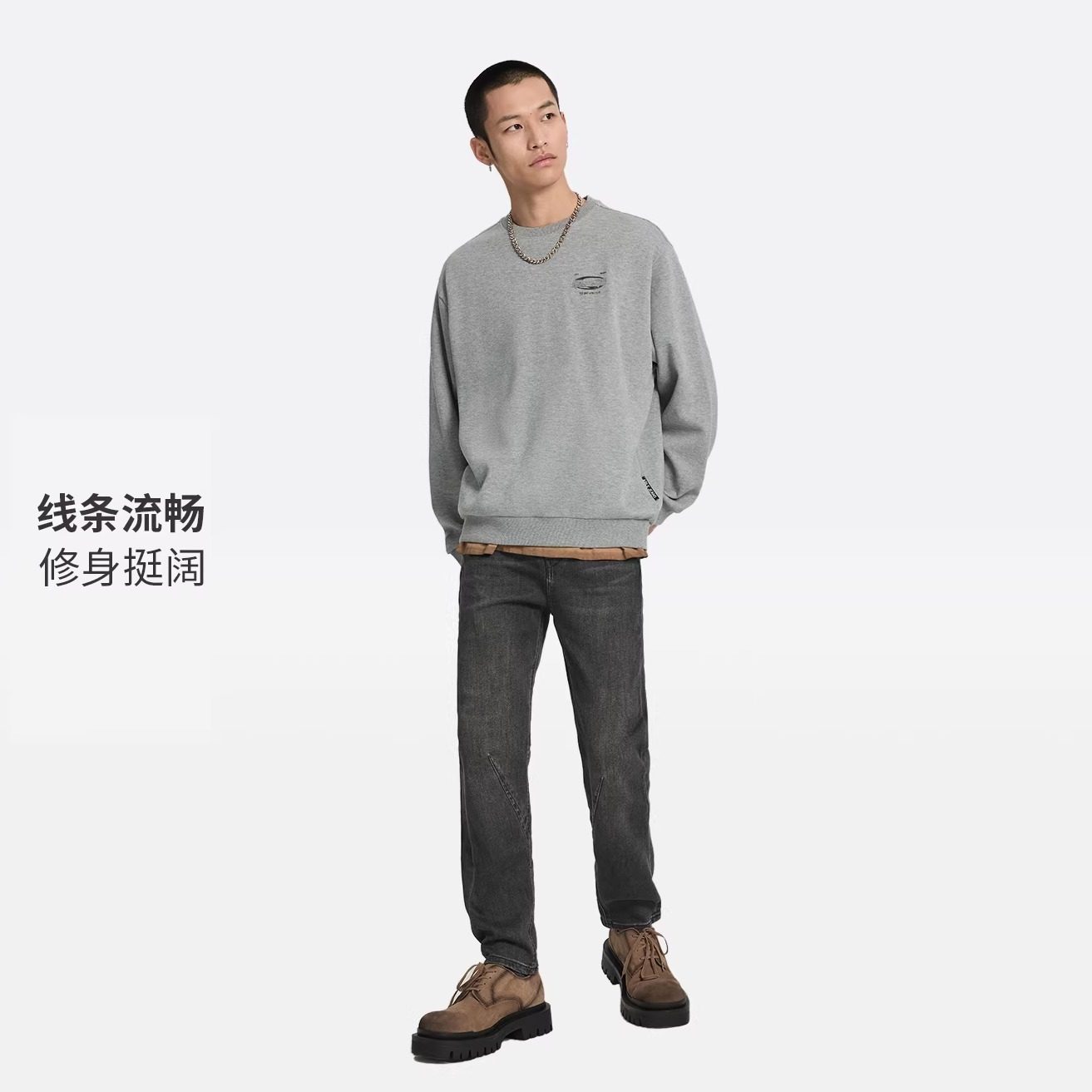 王安宇同款森马牛仔裤男做旧复古阔感弯刀裤宽松弧形裤2025冬新款