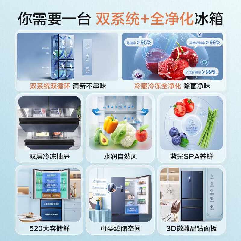 容声520法式四门冰箱双系统双循环一级能效风冷无霜大容量