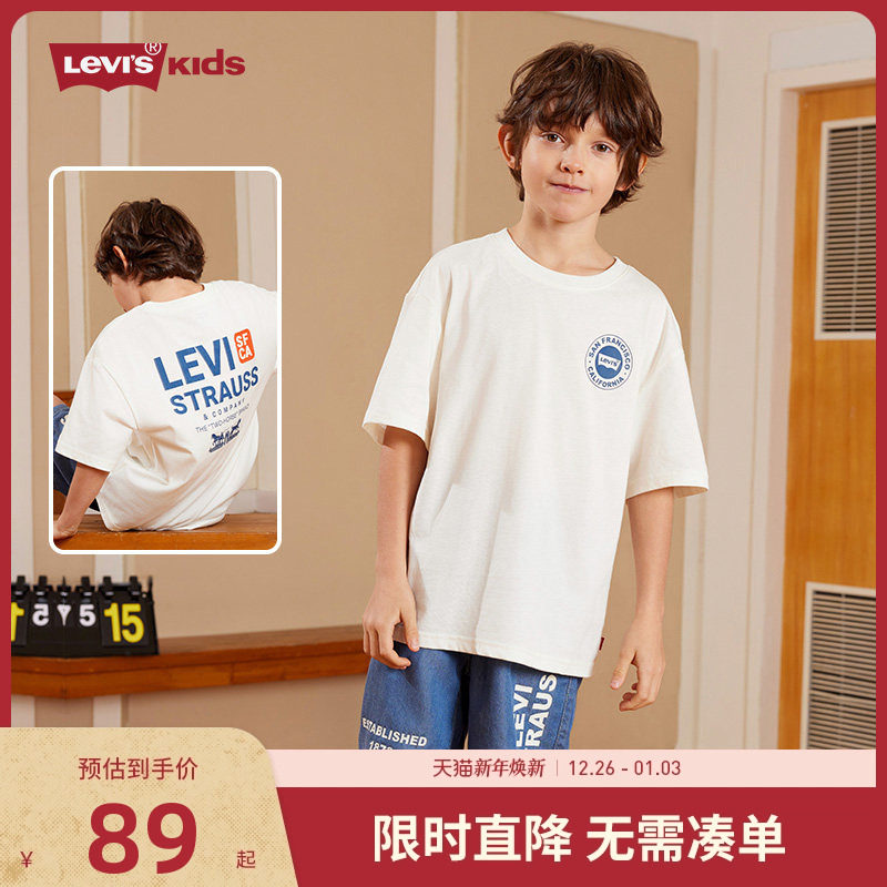 李维斯童装男童短袖T恤2025夏季新款儿童打底衫中大童女半袖夏装