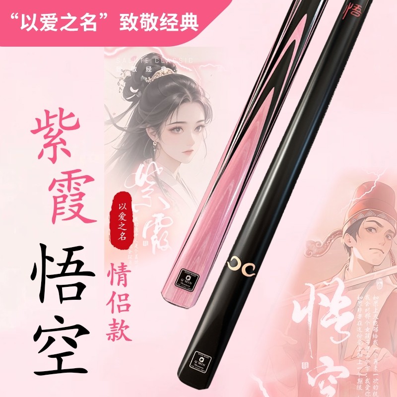悟空紫霞台球杆小头热销榜中式黑八男女生枪手球房公冲一体桌球杆