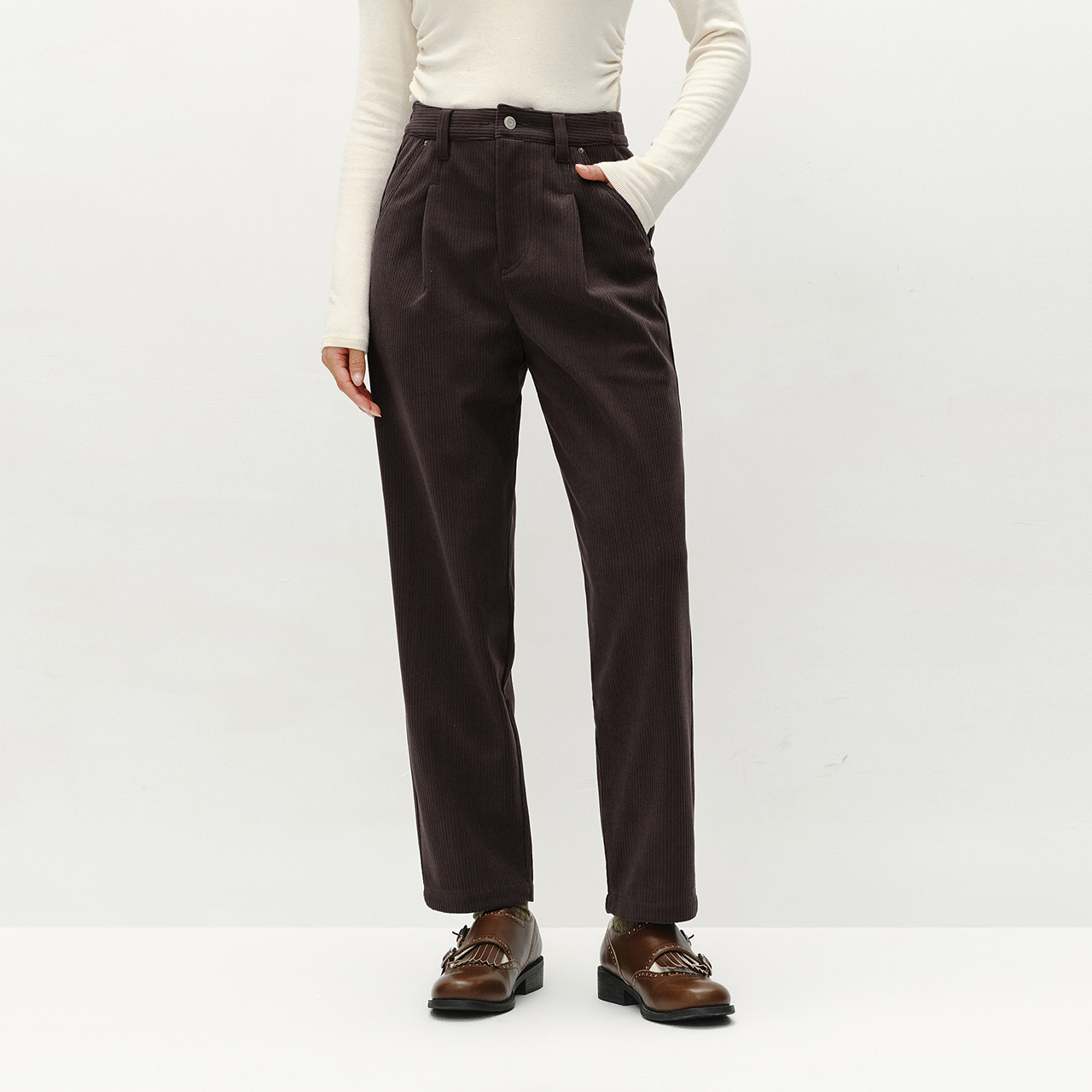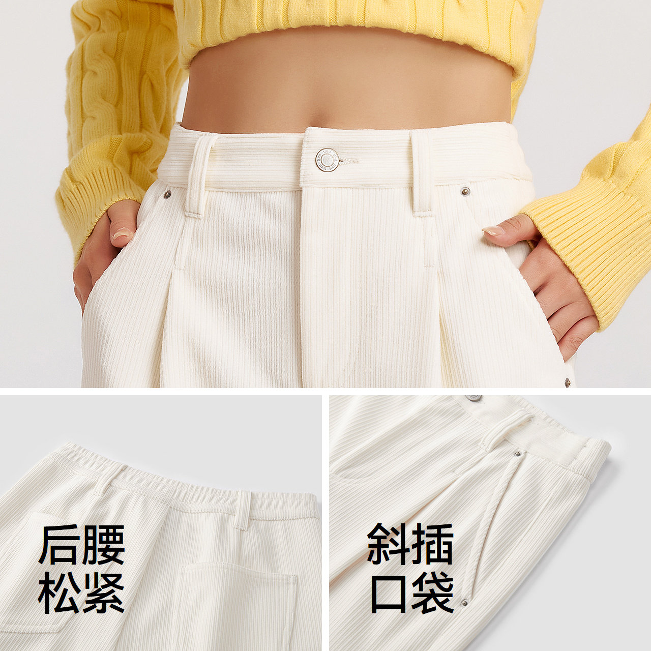 魔悦加绒糯米裤2025秋冬新款口袋显瘦休闲裤