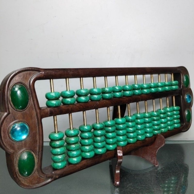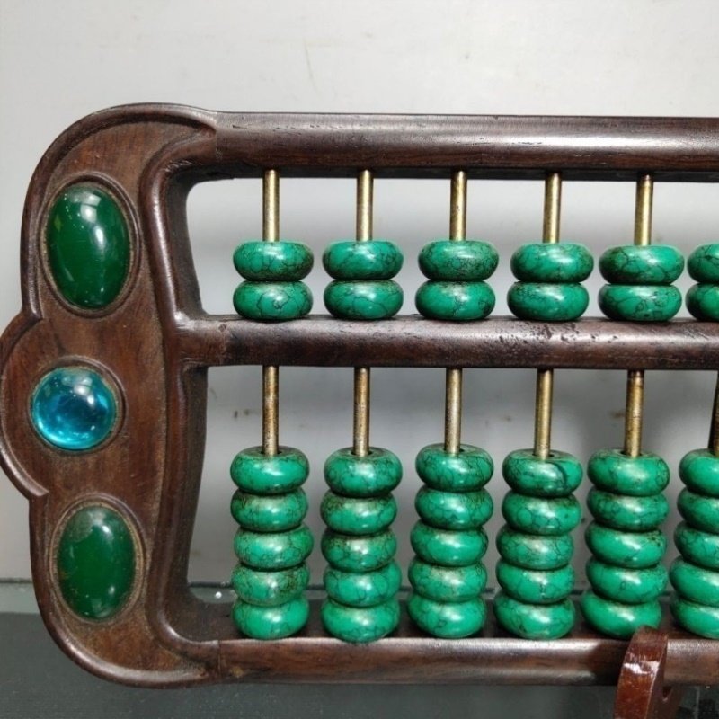特价收藏老木制镶宝石绿松石算盘摆件古玩古董古玩杂项老货办公桌