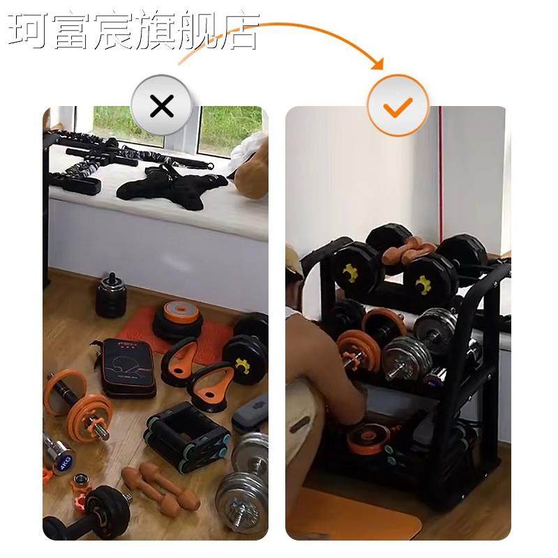 珂富宸哑铃架子家用小型多功能放哑铃壶铃收纳支架健身器材健身房置物架摆件饰品床笠拉车