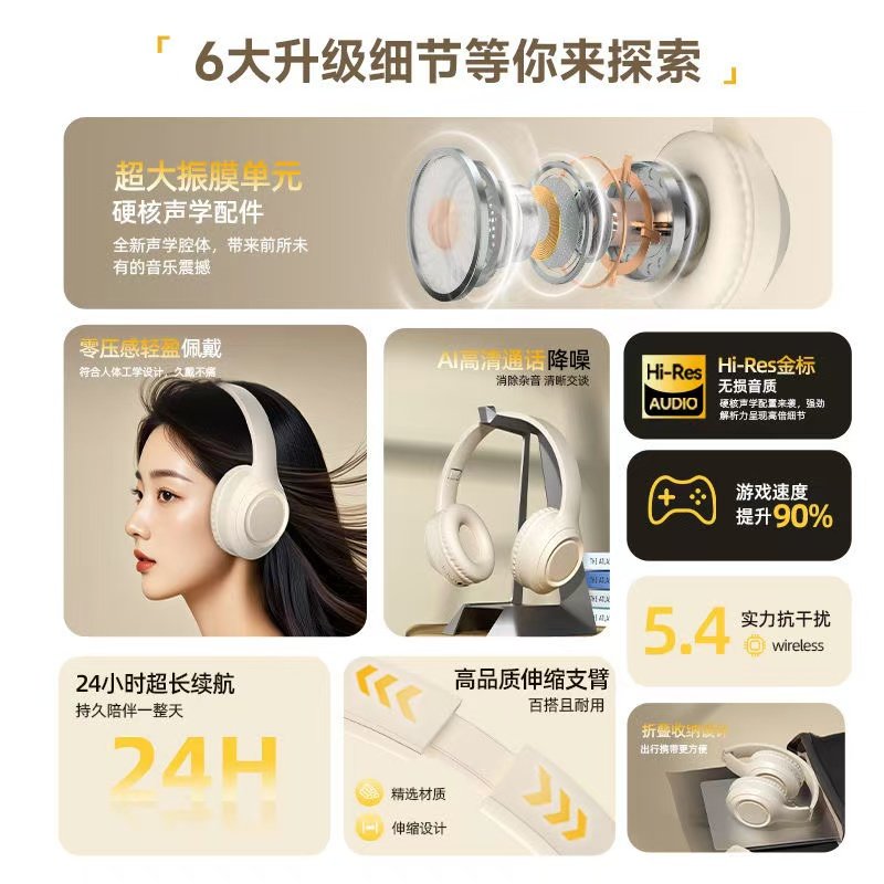 头戴式耳机降噪蓝牙游戏运动无线耳麦通话高音质超长续航2025新款