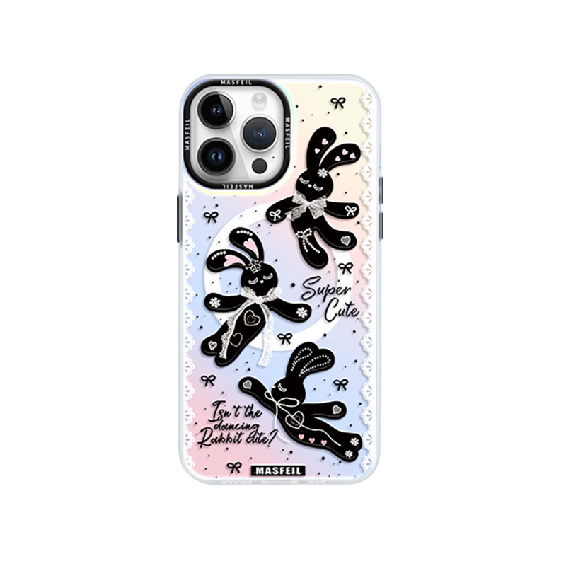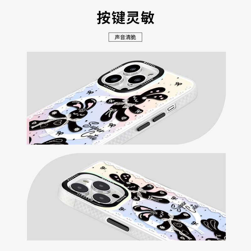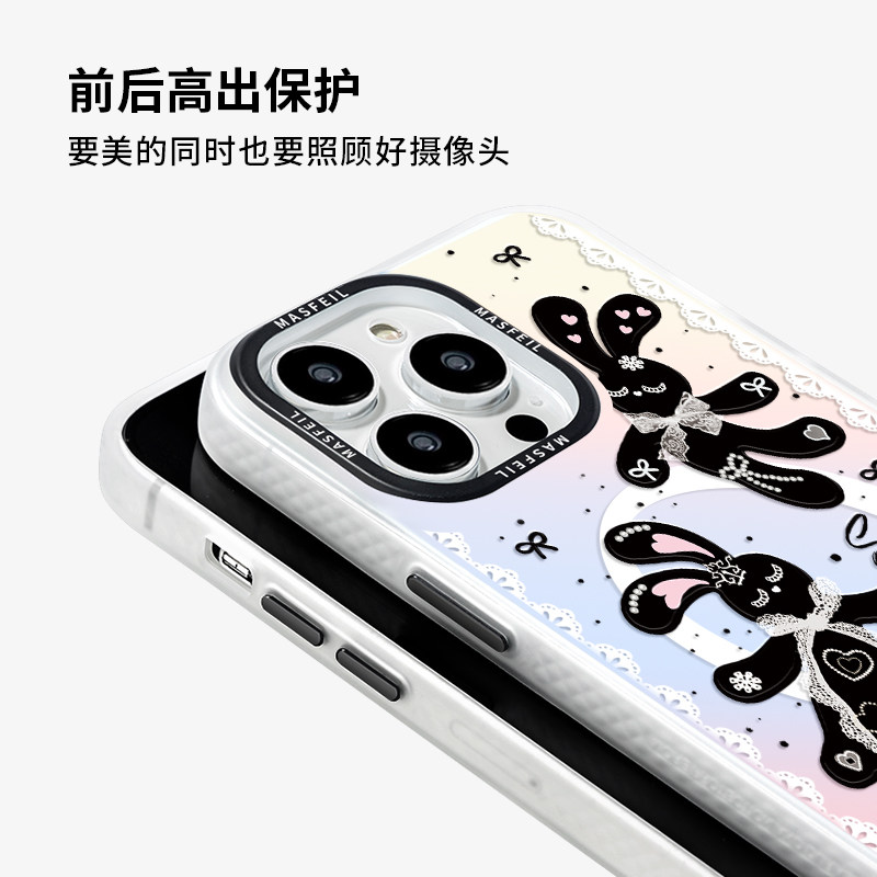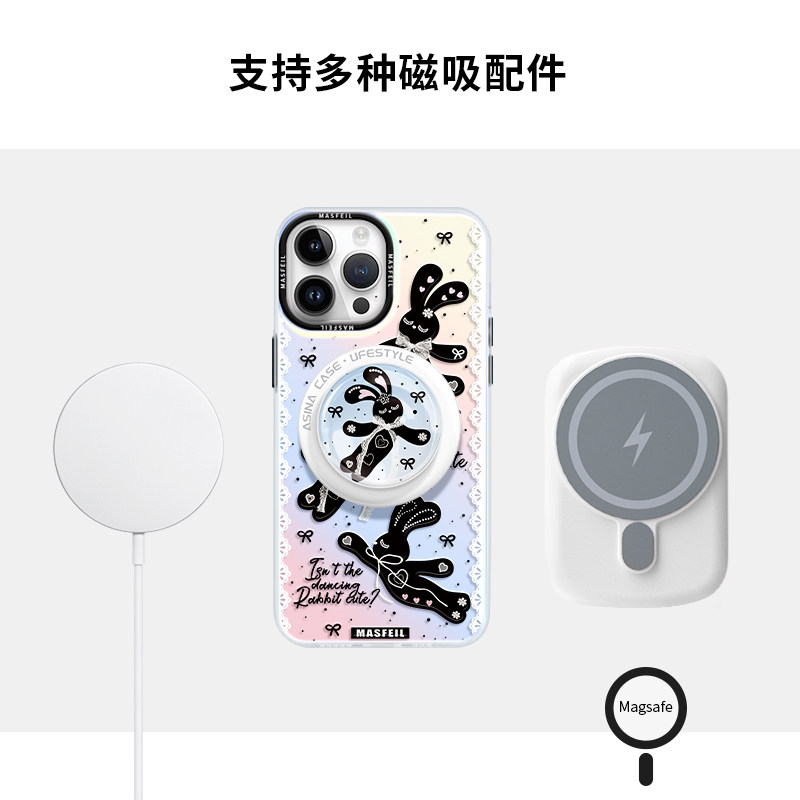 MASFEIL × 蕾丝兔子适用iPhone16Promax手机壳新款14Pro磁吸带支架苹果15保护套好看ip13pm高级感12全包简约