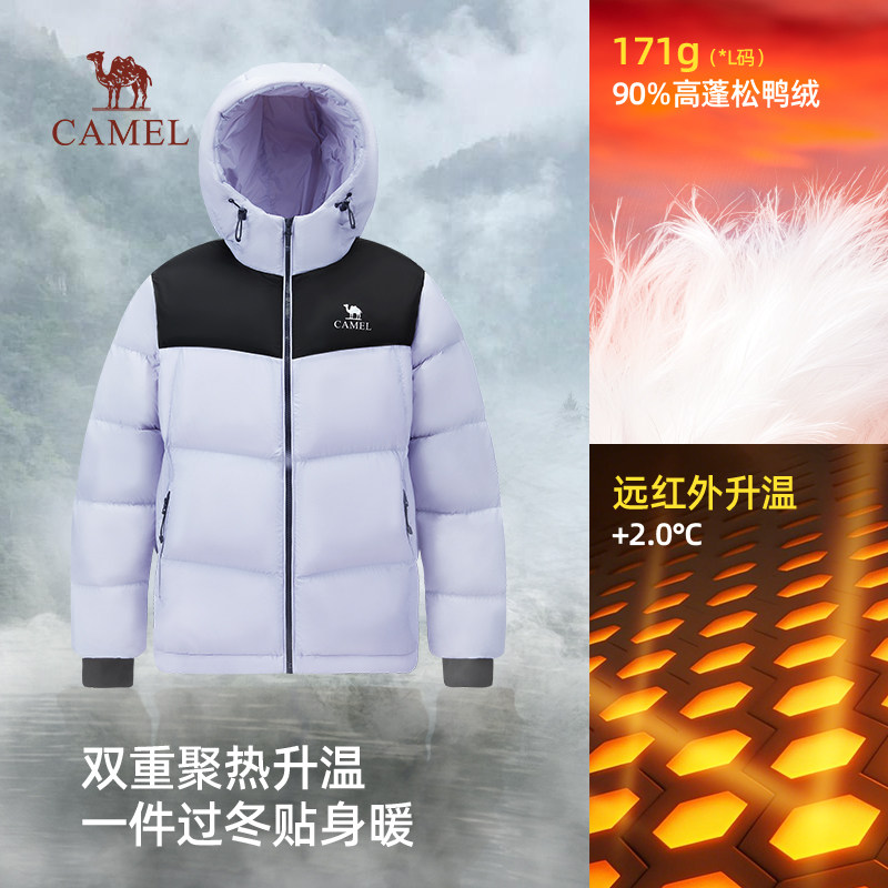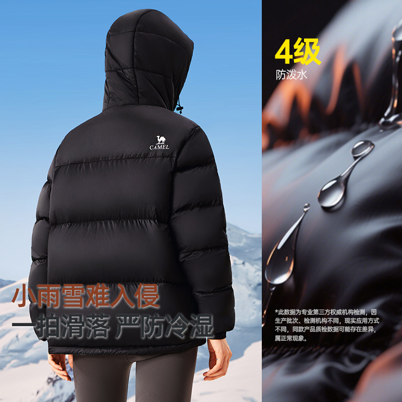 骆驼火山羽绒服女装2025秋冬新款防寒短款加厚保暖防风连帽外套男