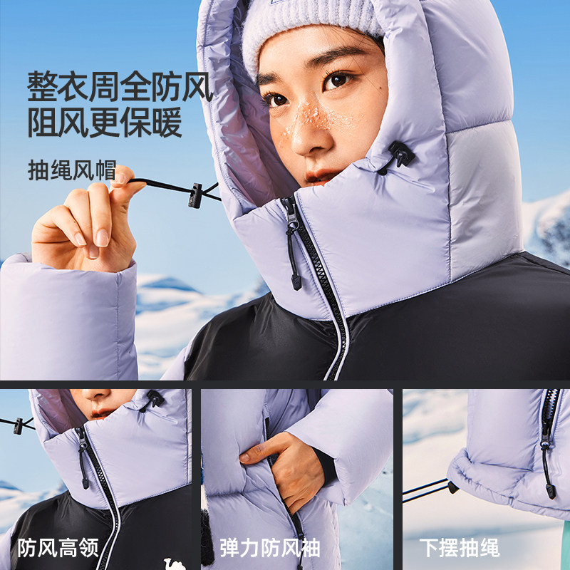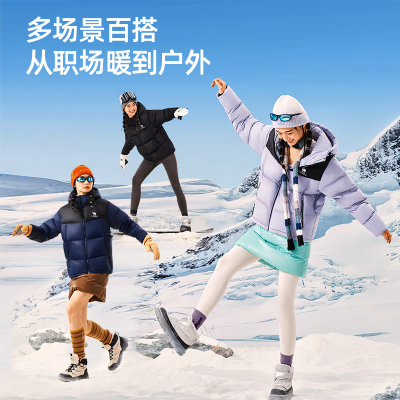骆驼女装羽绒服2025冬季新款加绒加厚连帽保暖短款面包服外套男女