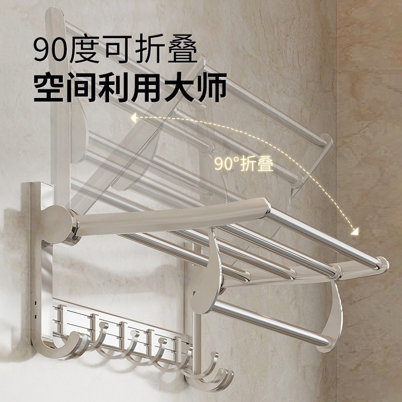 毛巾架卫生间置物架免打孔浴室太空铝浴巾架卫浴五金挂件套装收纳