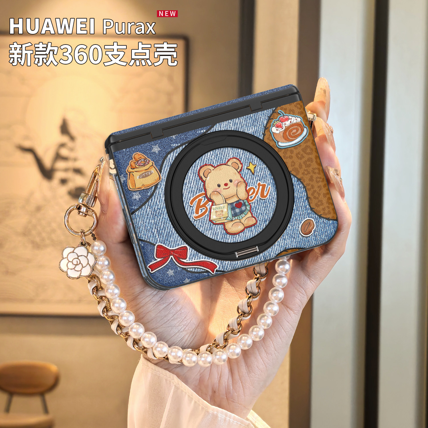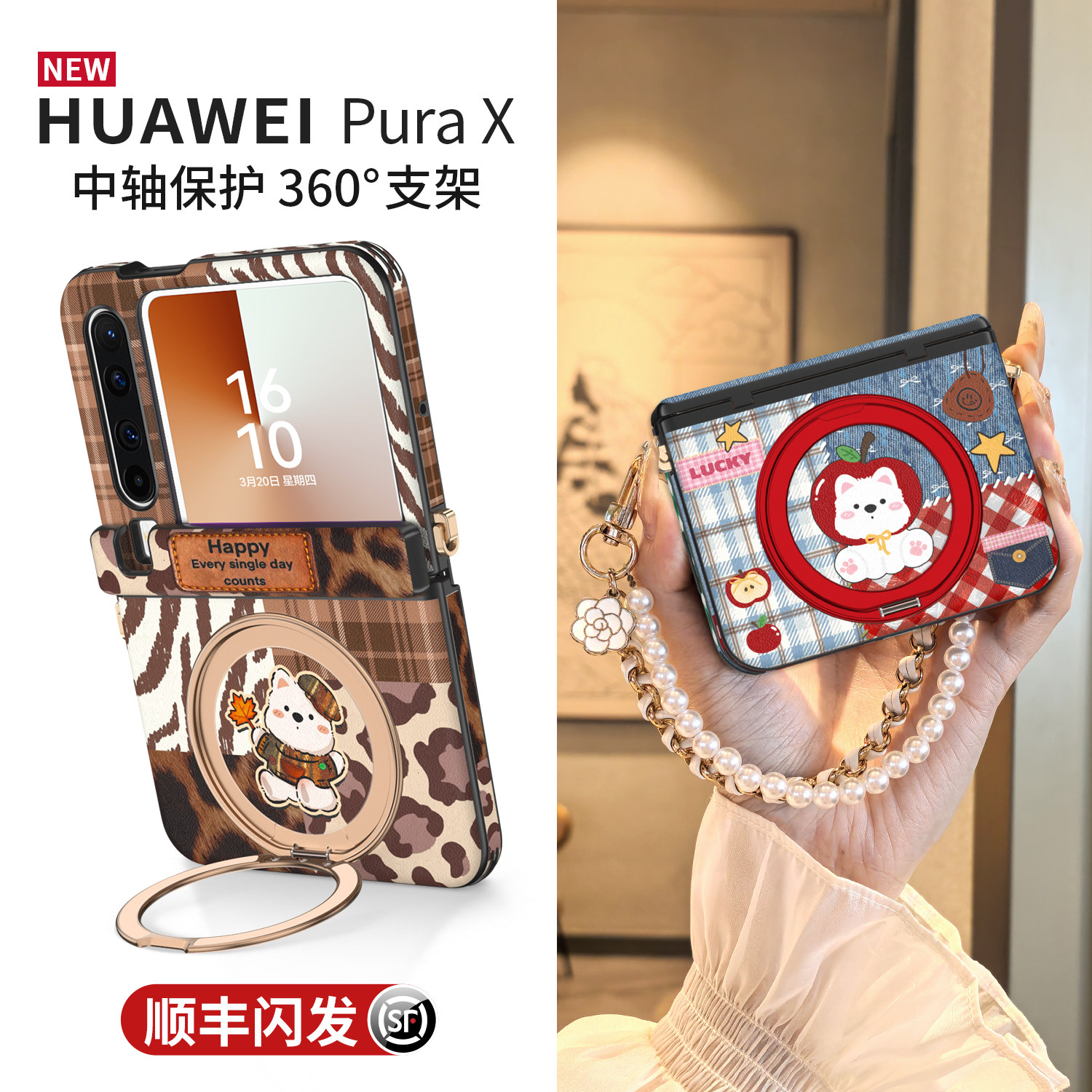 360旋转支架|适用华为purax手机壳新款磁吸中轴pura典藏版x带挂绳手提链条外壳卡通秋冬超薄全包防摔女保护套