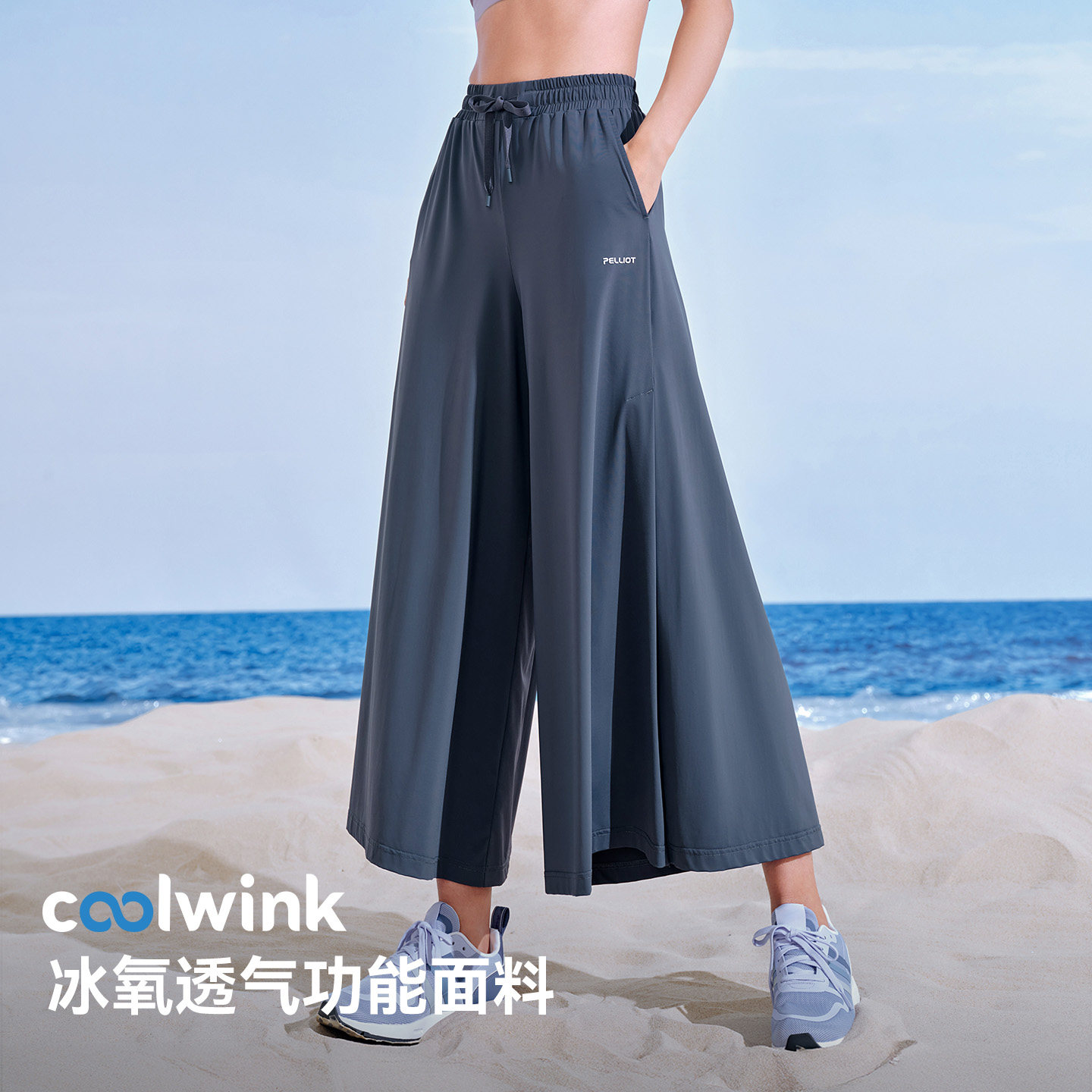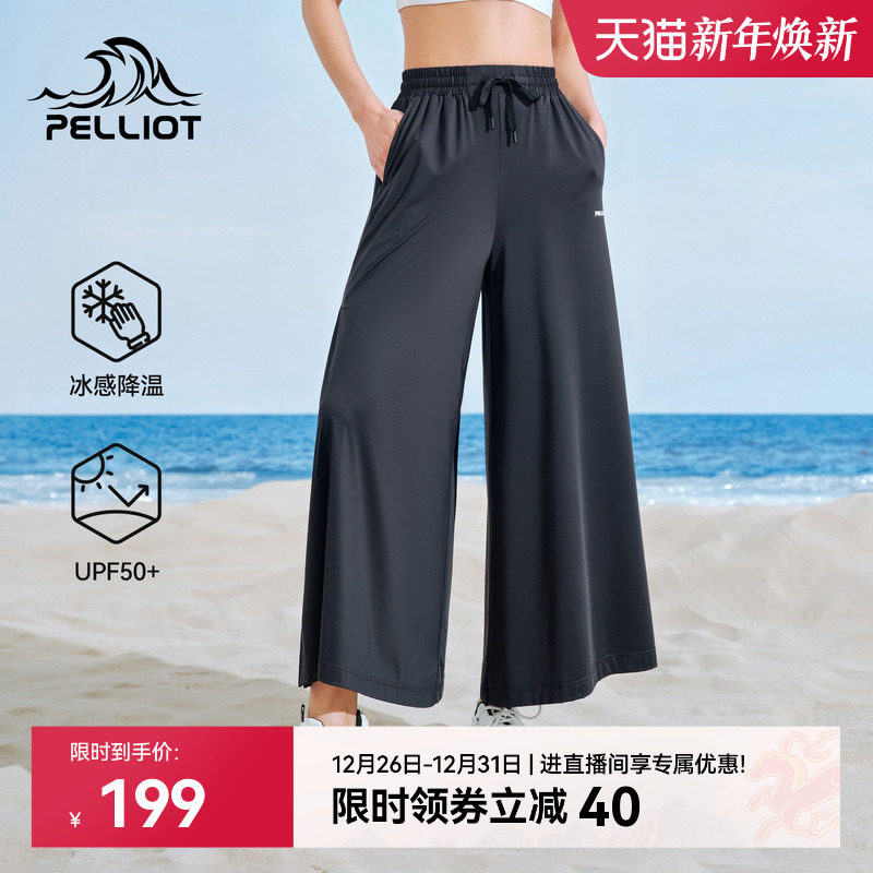 伯希和冰丝防晒裤女款宽松百搭时尚休闲裤子垂感显瘦开叉阔腿裙裤
