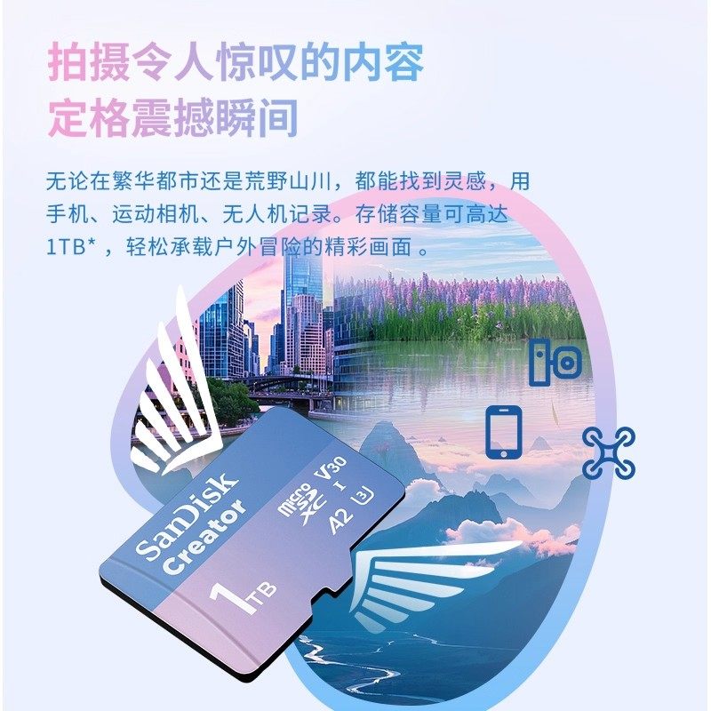 闪迪tf卡512g256g128g高速4K大疆无人机运动相机掌机存储内存卡U3