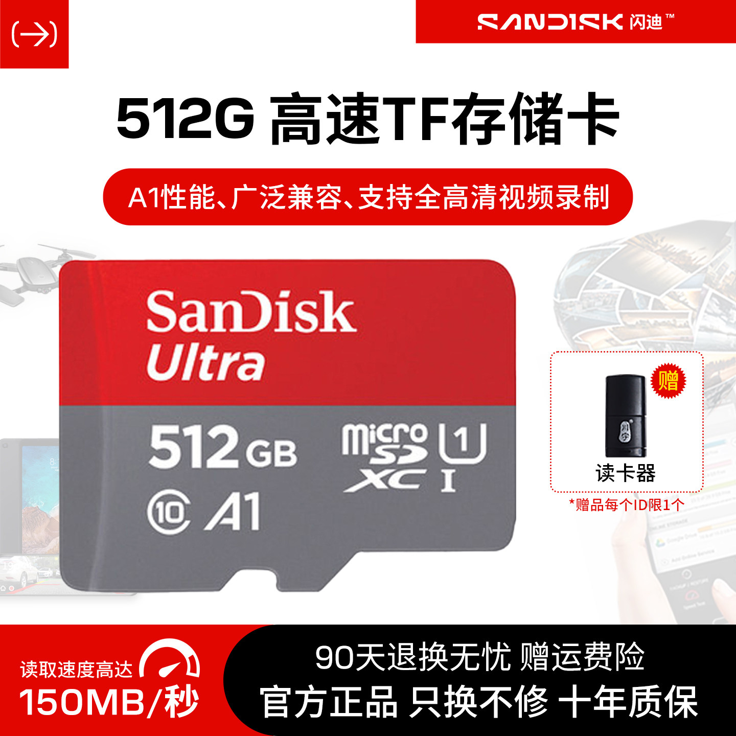 闪迪tf卡512g内存卡高速sd卡行车记录仪无人机闪存卡switch存储卡