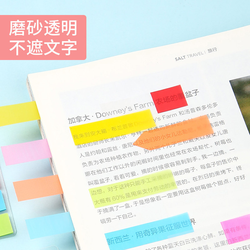 索引贴标签贴纸便利贴学生用小条标记小便签贴透明可书写纸质彩色