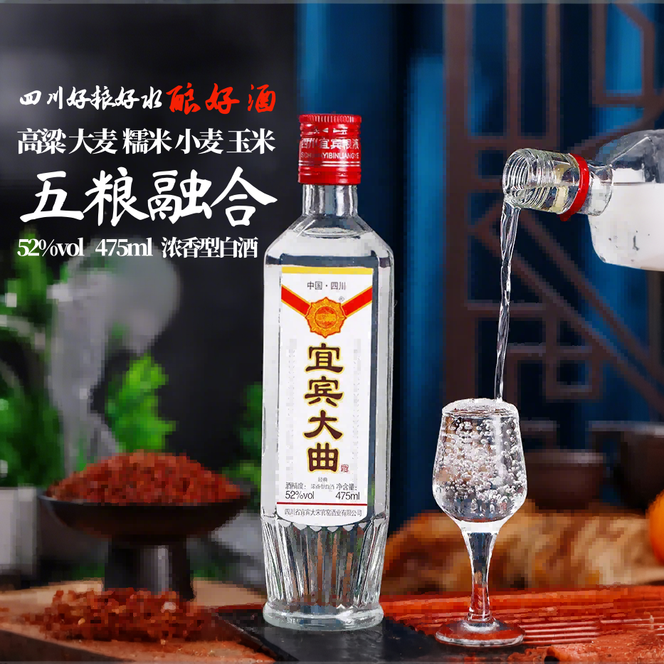 宜宾大曲52度浓香型白酒475ml五粮酿造纯粮食酒四川白酒正品特价