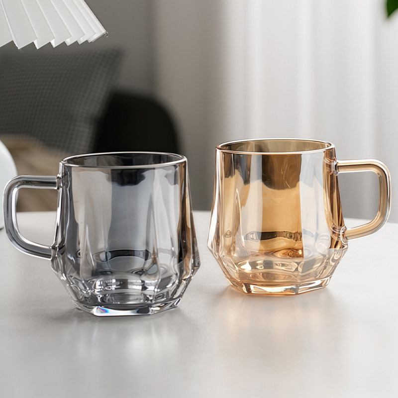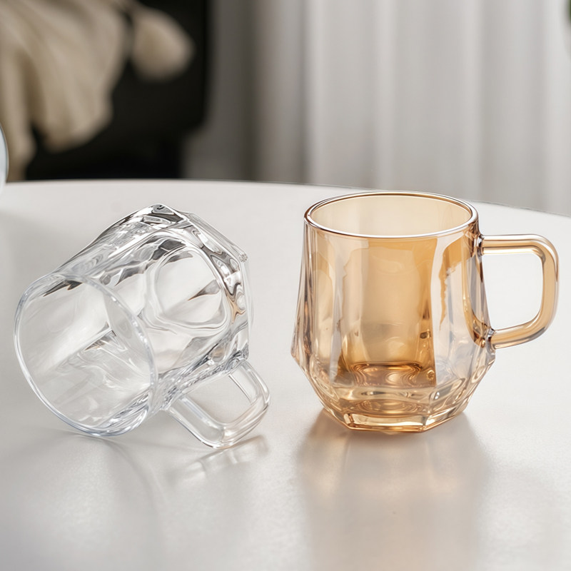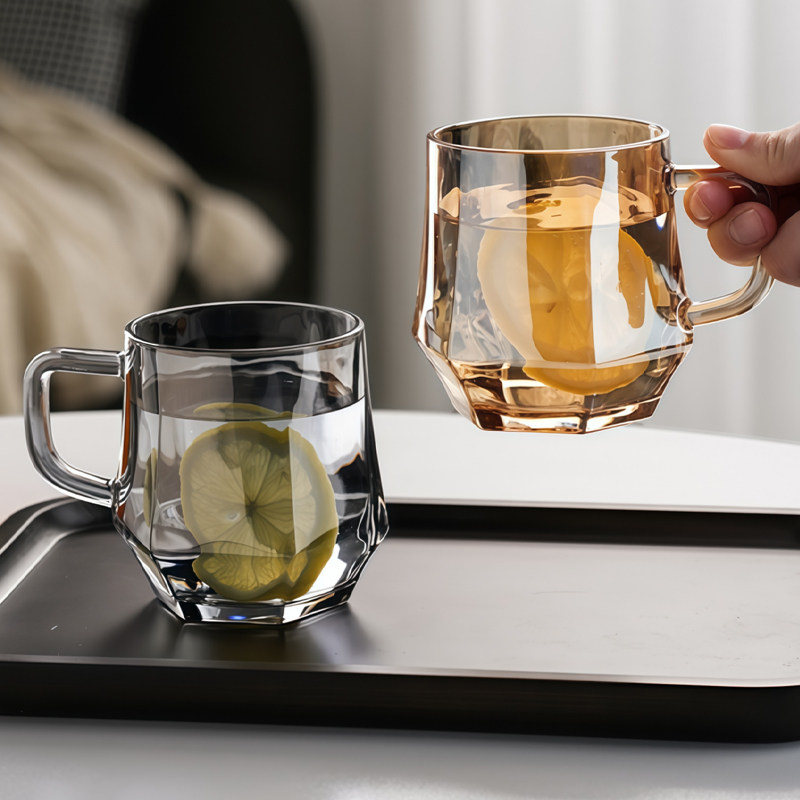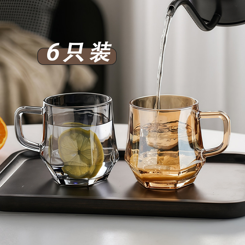 ins风创意牛奶咖啡杯高级感六角杯客厅耐热泡茶杯带把手玻璃水杯