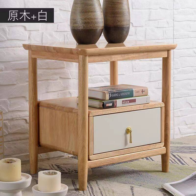 d新款北欧风格简约新中式实木床头柜单抽屉卧室床边储物收纳柜整