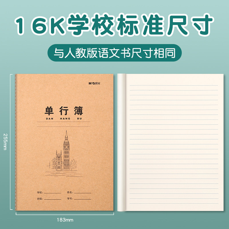 晨光单行簿学生用作业本书写练习本2026款单行本教学用本米黄色加厚16K牛皮纸简约本子学生笔记本标准课业本