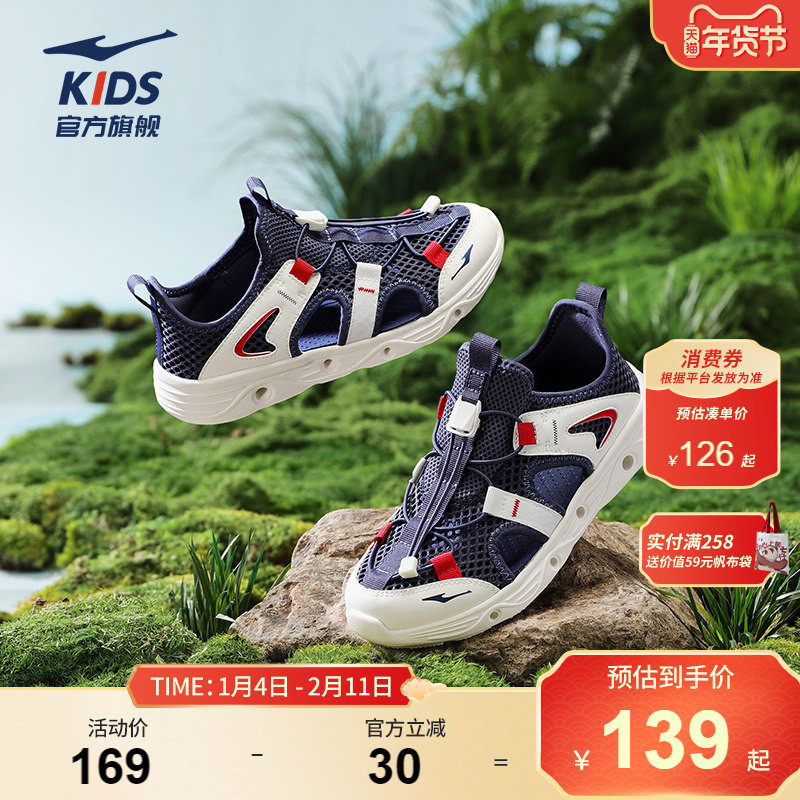 征途|鸿星尔克童鞋男童夏季儿童包头凉鞋框子鞋沙滩鞋运动溯溪鞋