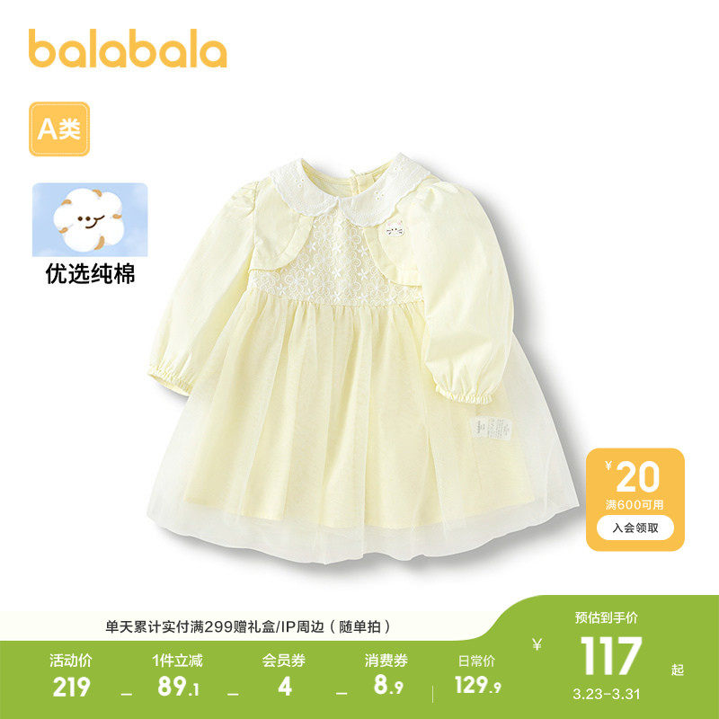 【balaOne】巴拉巴拉童装女童连衣裙2025新款春装网纱裙甜美洋气