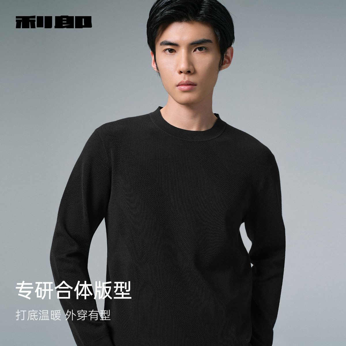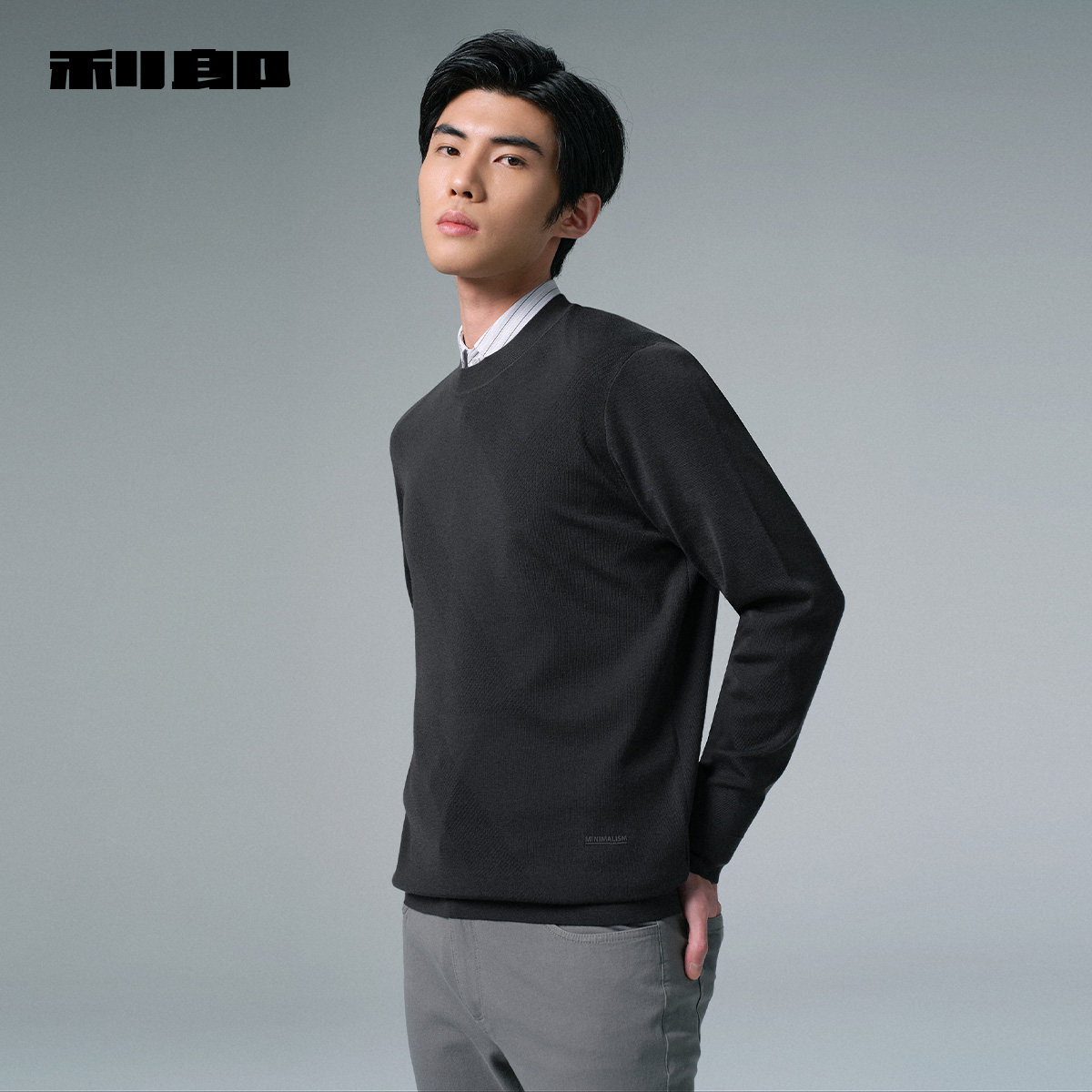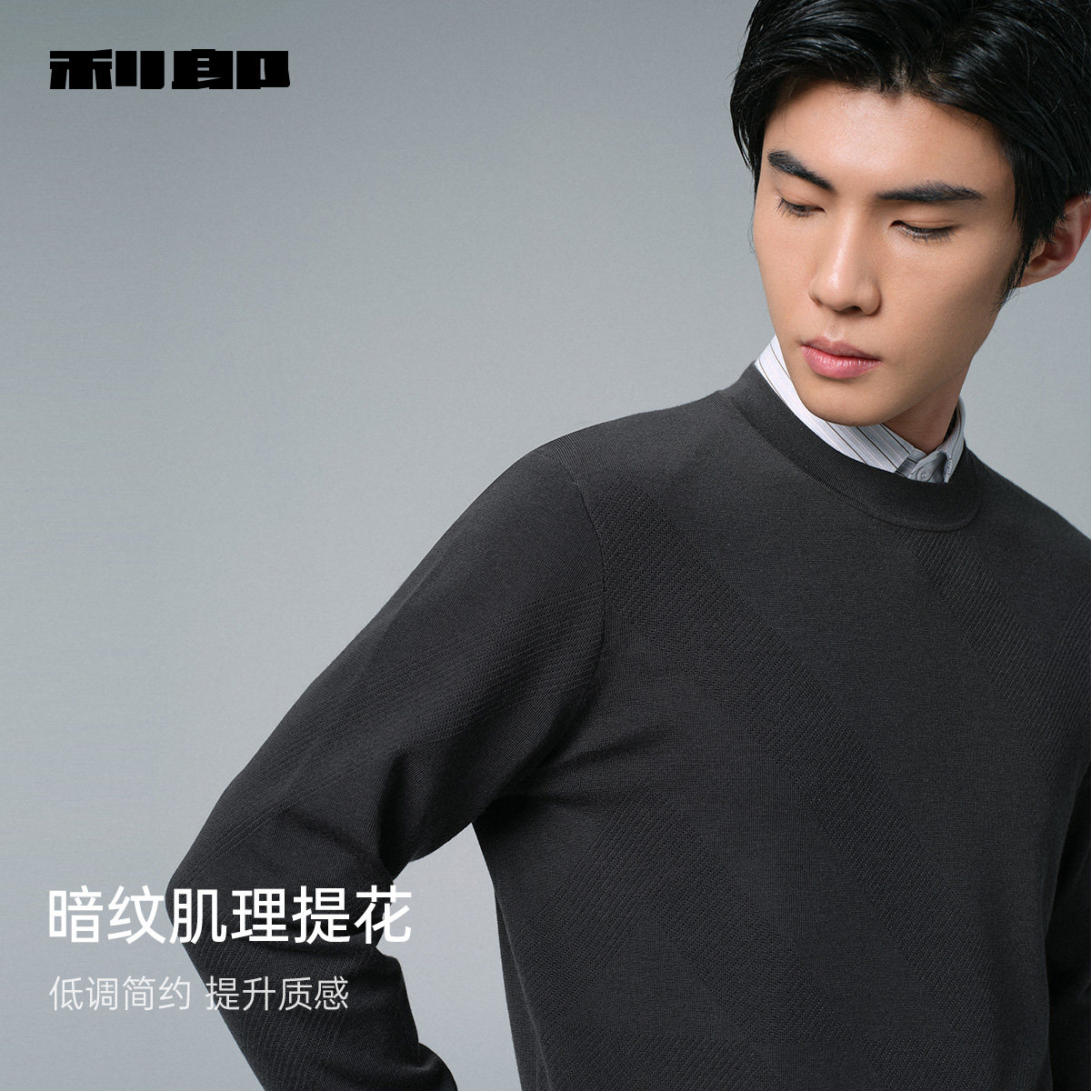 【消臭】利郎官方 毛衫男士圆领冬季纯色提花保暖休闲毛衣
