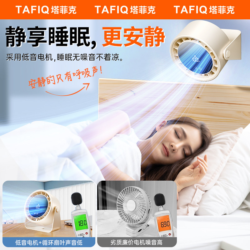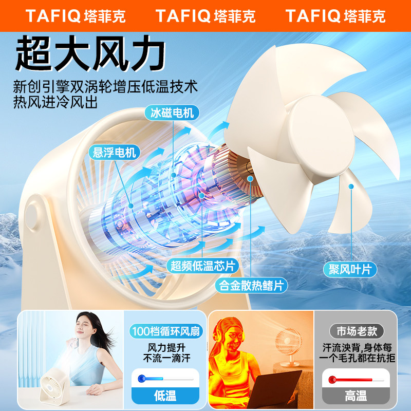 【100档循环风扇】涡轮小风扇家用usb充电数显办公室宿舍厨房壁挂静音大风力超长续航制冷小空调夏天降温神器