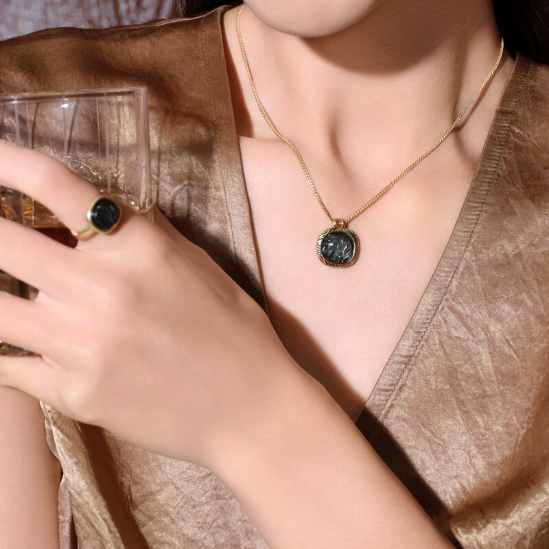 AmberLollipop天然白贝母项链女方形吊坠锁骨链小众颈链百搭配饰