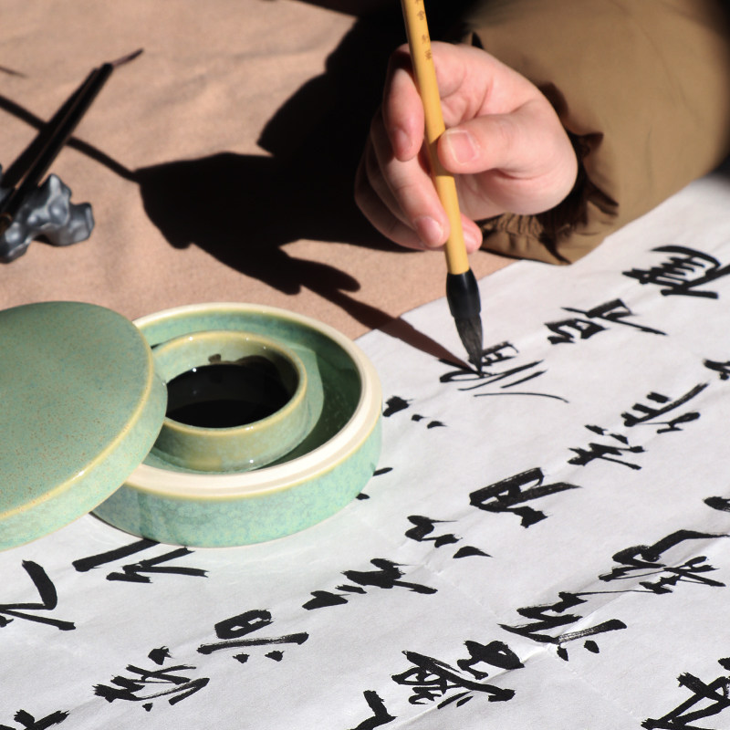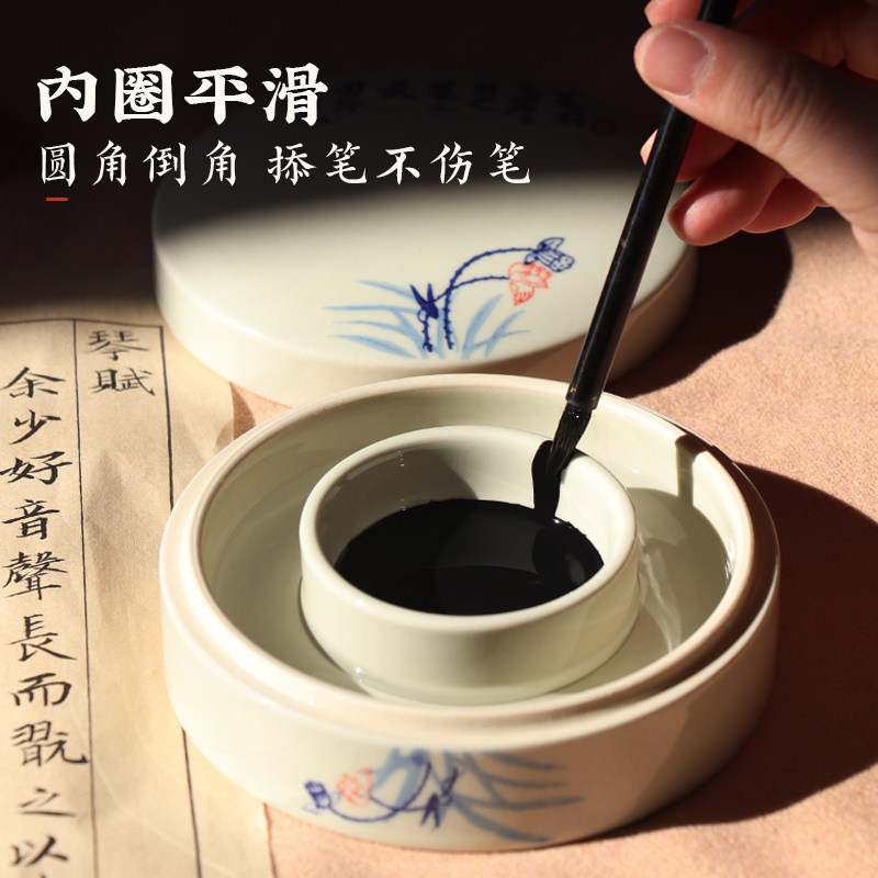 火锅砚台带盖陶瓷砚台书法专用保湿不干墨笔墨纸砚文房四宝墨盒