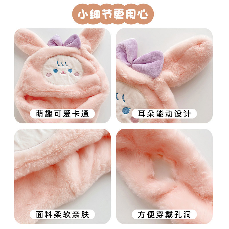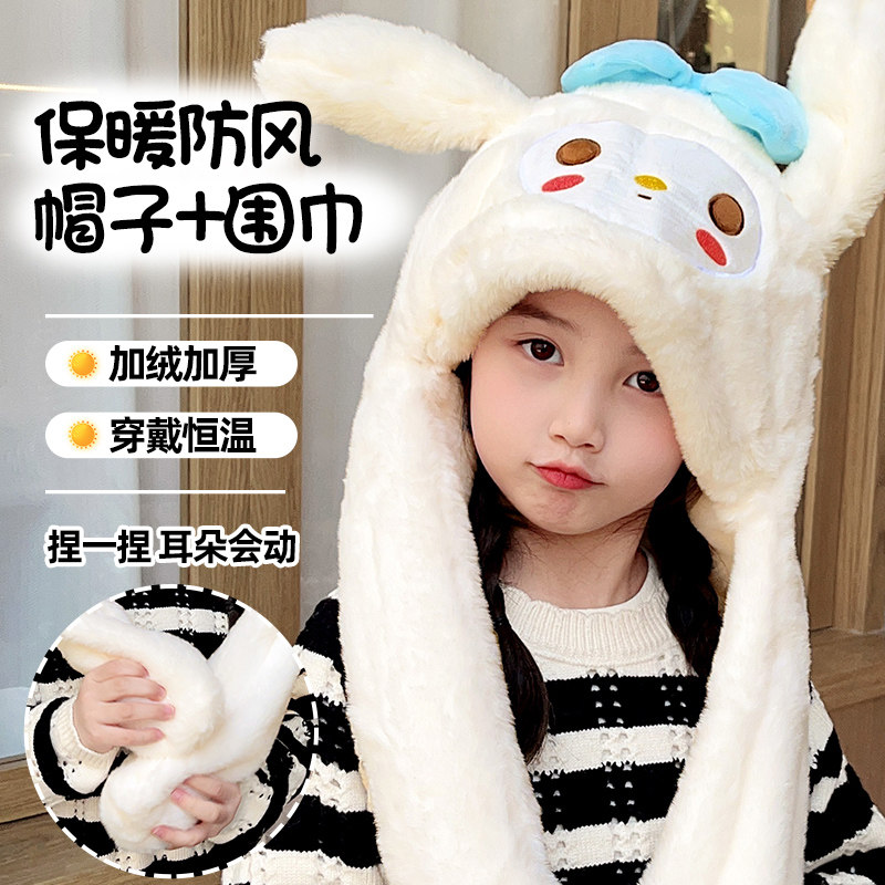秋冬季宝宝儿童帽子围巾一体护耳男孩女童库洛米耳朵会动新款围脖