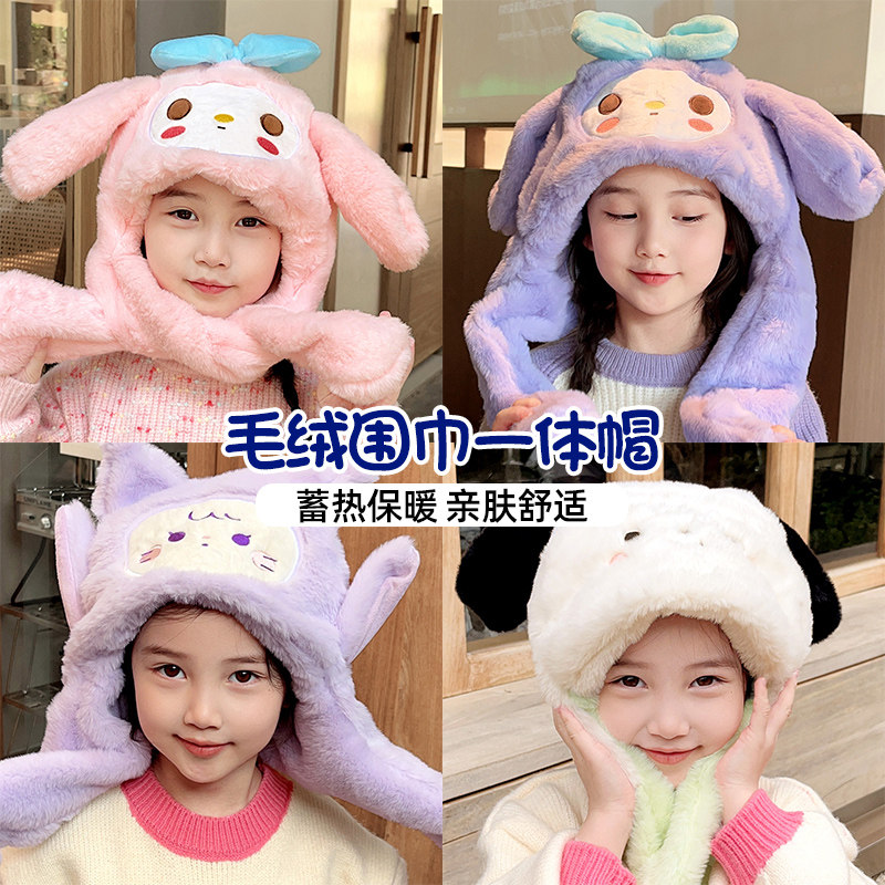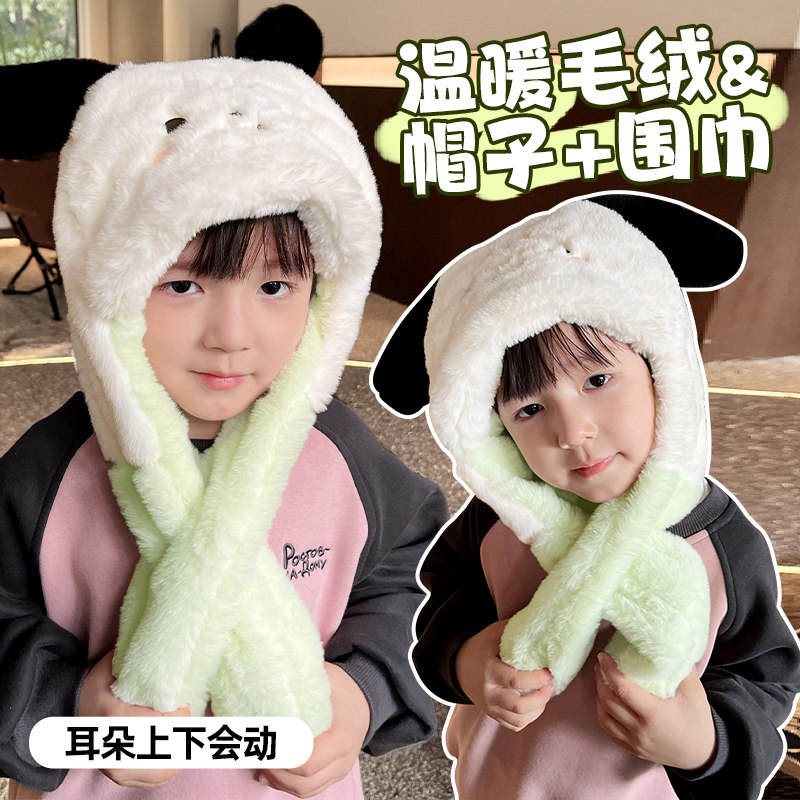 尼多熊儿童帽子围巾一体冬季防风帽宝宝毛绒护耳帽女童加厚保暖帽