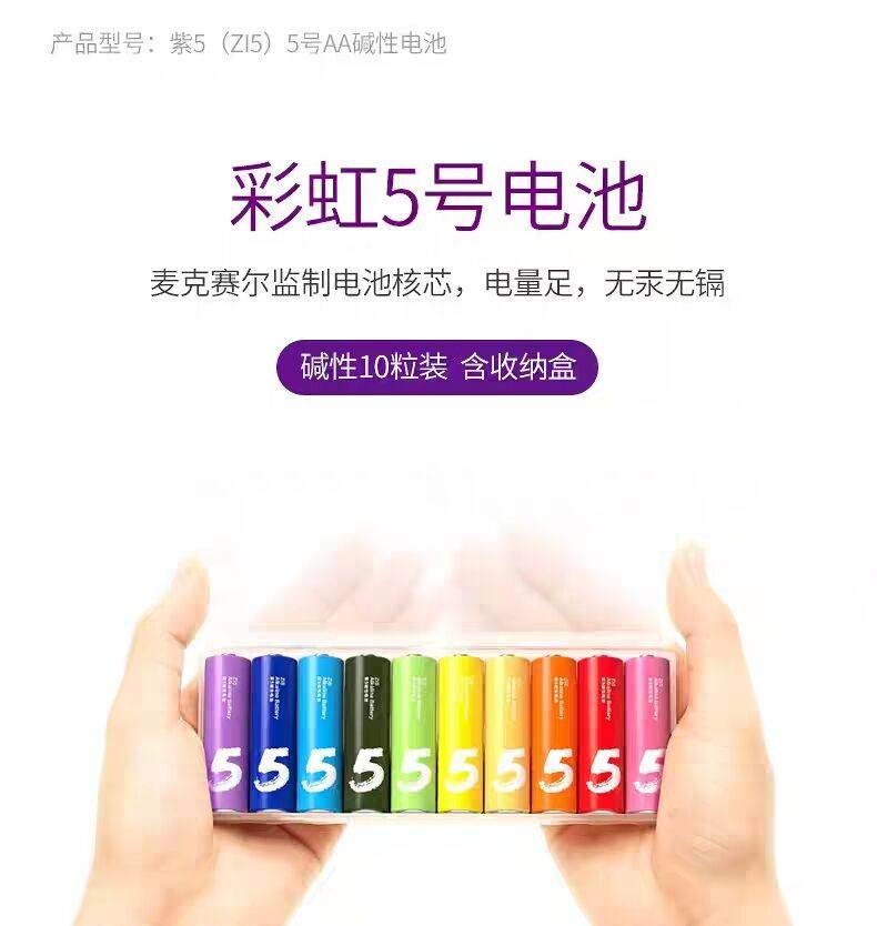 ZMI紫米彩虹电池5号7号普通碱性儿童玩具电池适用于小米鼠标家用