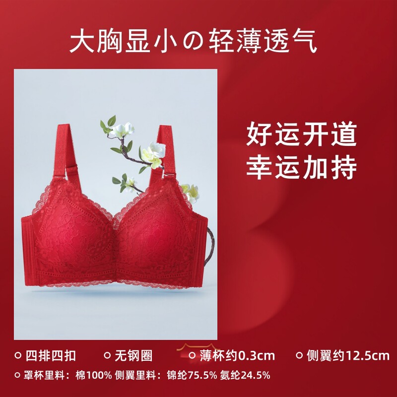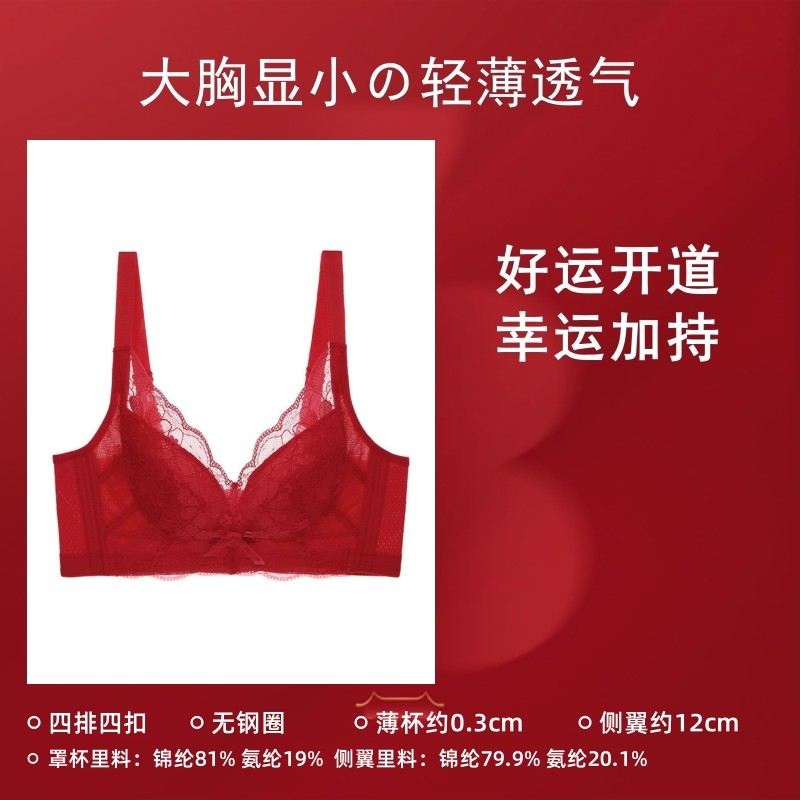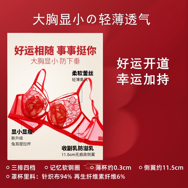 【宋轶同款风巢杯】安莉芳透气文胸大胸显小本命年红小胸聚拢内衣