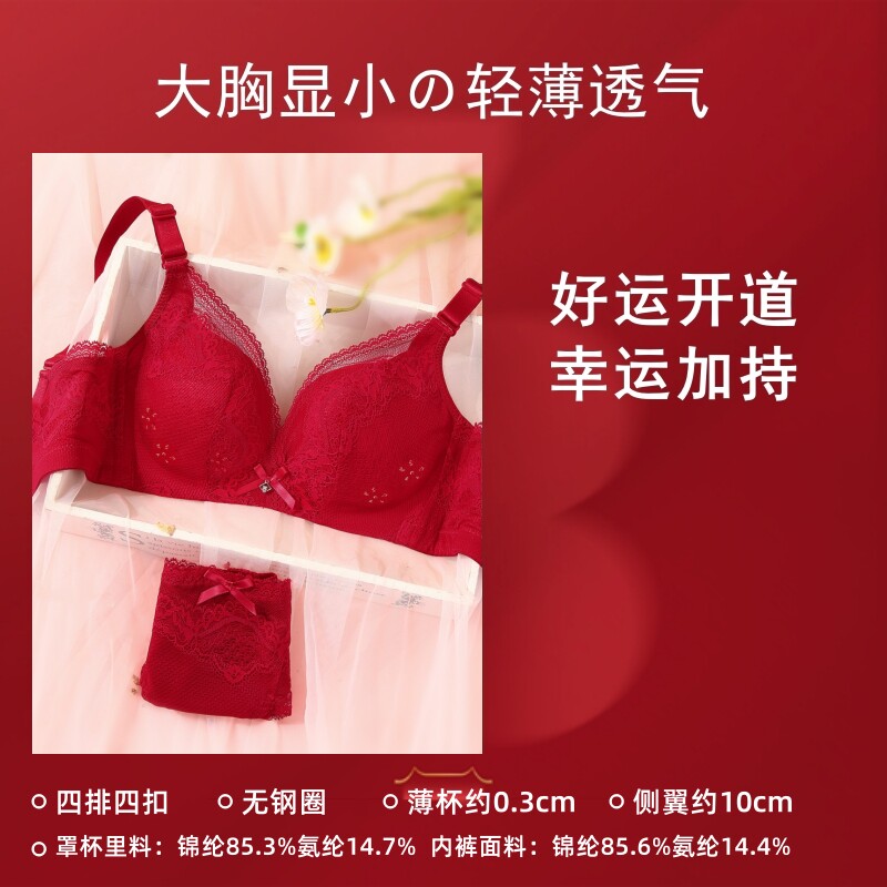 润微红色内衣女本命年套装结婚新娘聚拢收副乳防下垂马年内裤文胸