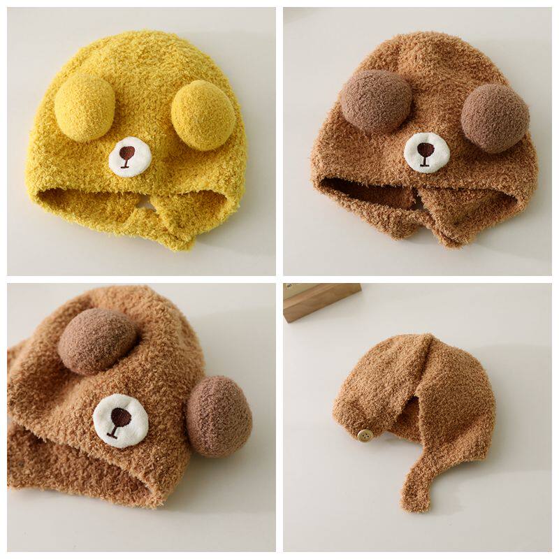 尼多熊婴儿帽子围巾一体宝宝毛绒帽婴幼儿冬季保暖儿童防风护耳帽