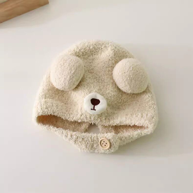 hugz儿童帽子男孩女孩保暖针织毛线帽秋冬季户外护耳防风熊仔帽子