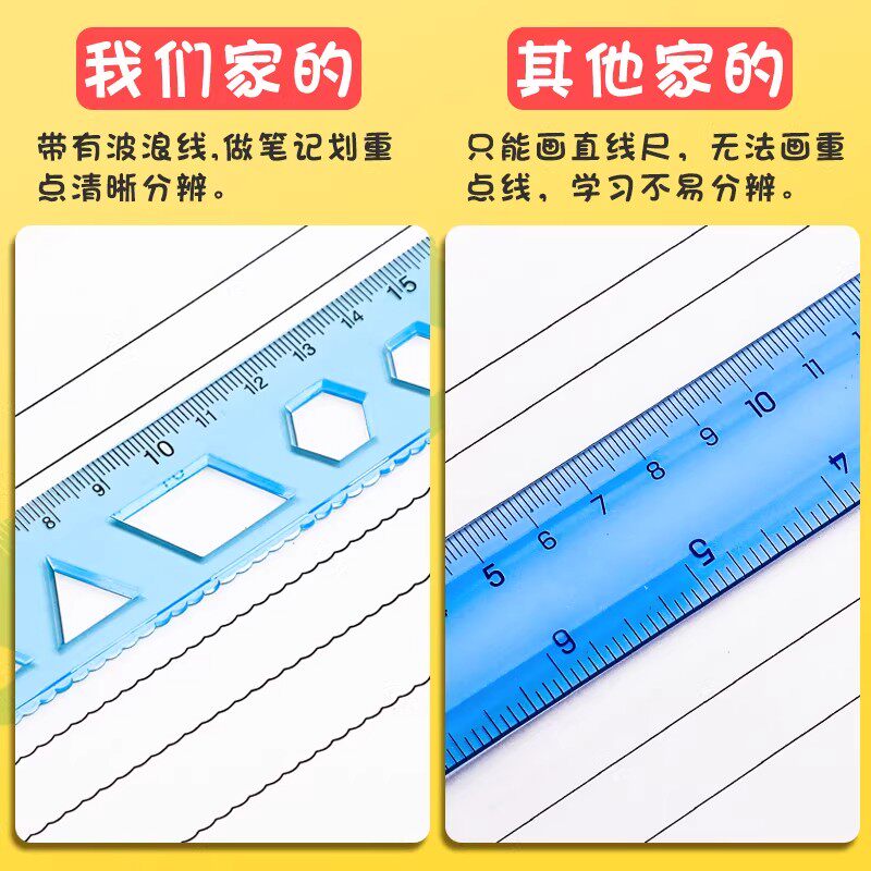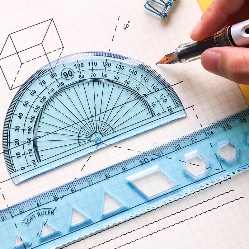 软尺四件套软直尺20cm带波浪圆规尺子套装套尺小学生三角尺初中生中考专用三角板多功能一二三年级量角器折叠