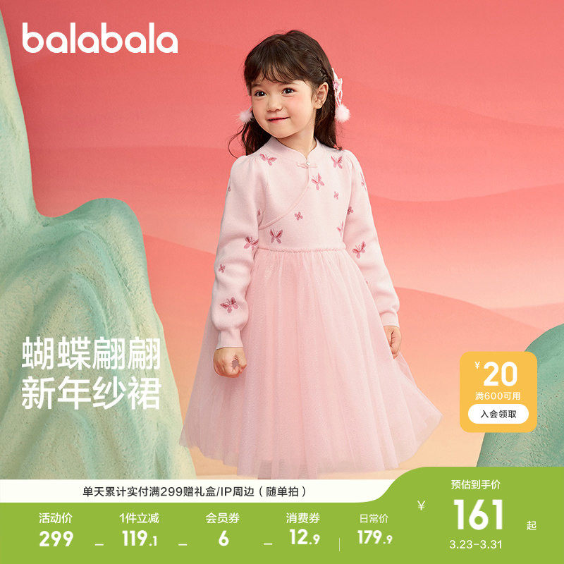 【balaOne】巴拉巴拉童装女童连衣裙2025新款春装网纱裙甜美洋气