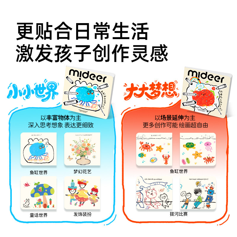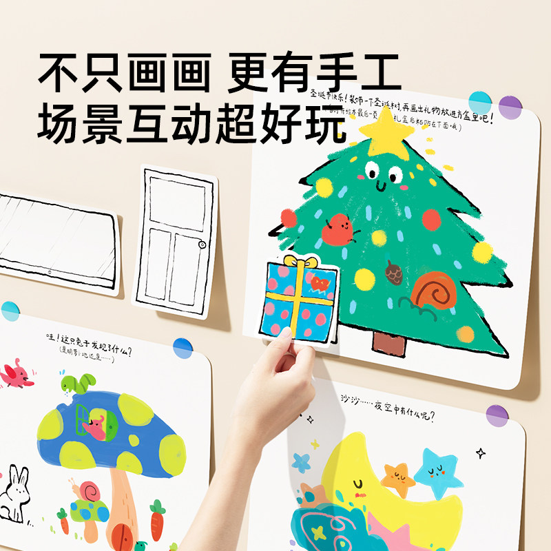 mideer弥鹿涂色绘画本低幼初学者绘画儿童益智画画本留白场景手工互动涂鸦人物动物元素幼儿园绘画本