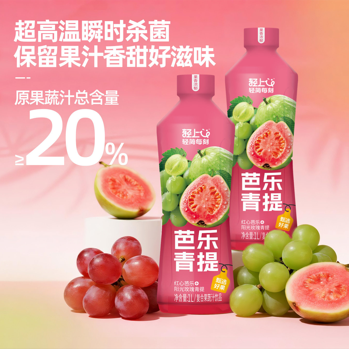 轻上芭乐青提果汁饮料红心阳光饮品整箱大瓶1L装葡萄荔枝玫瑰即饮