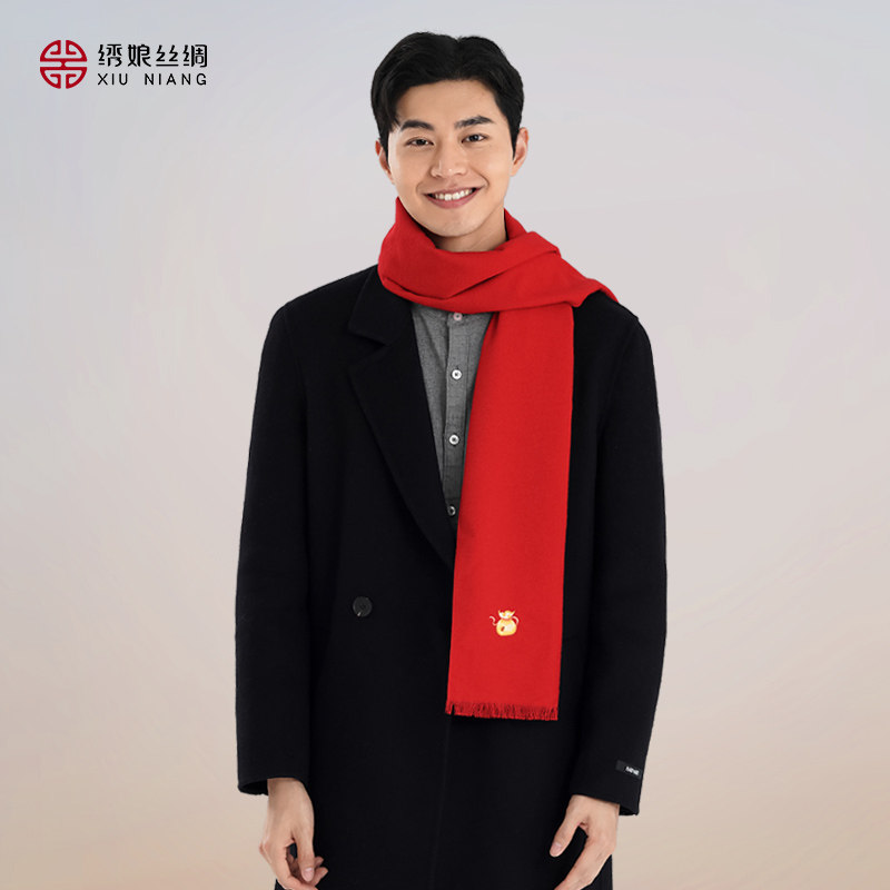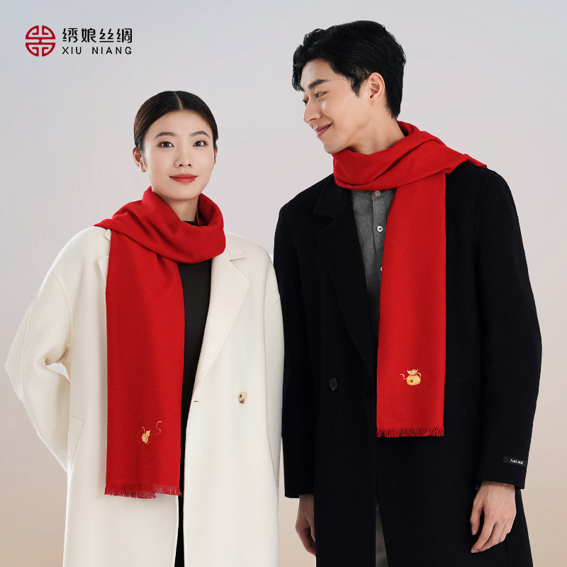 绣娘丝绸新款红色围巾情侣高级手工苏绣披肩冬季护颈围脖搭配礼盒