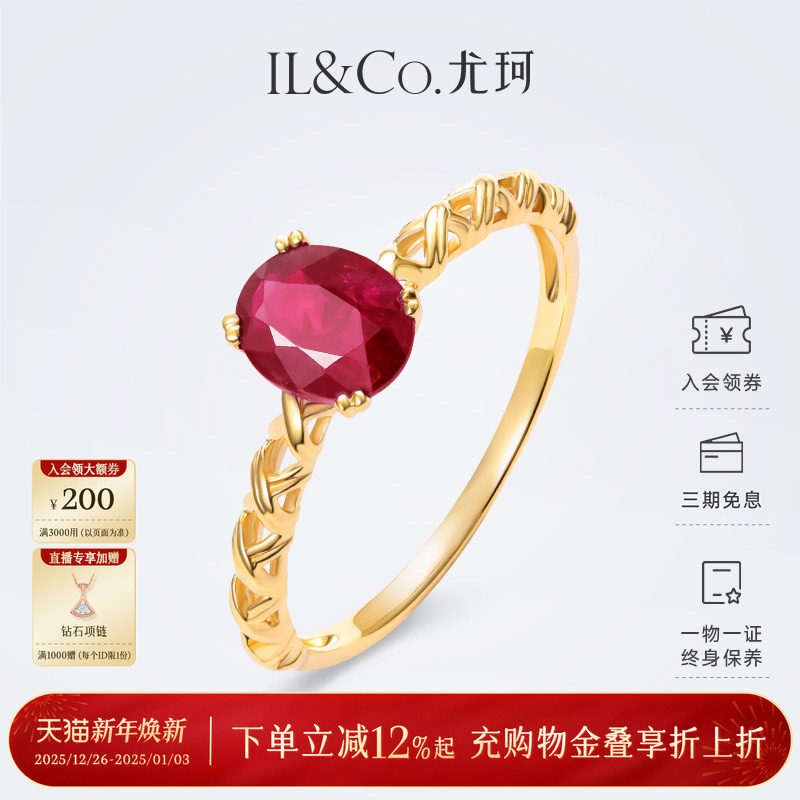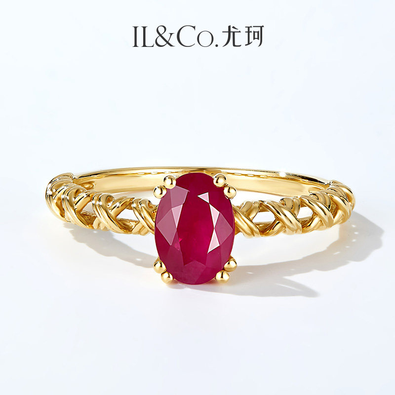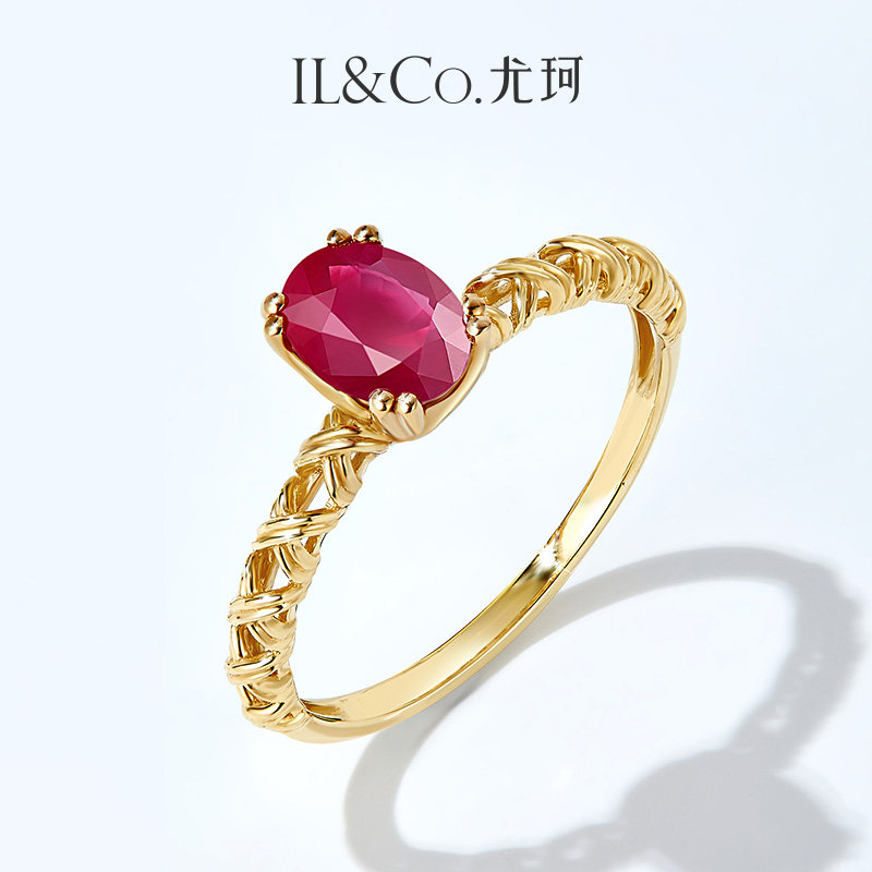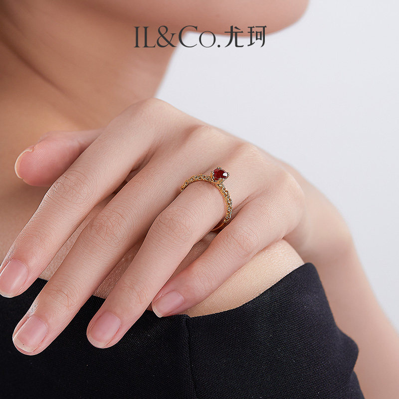 ILCO尤珂「荆棘玫瑰」黄18k金克拉红宝石戒指镂空戒臂天然彩宝女