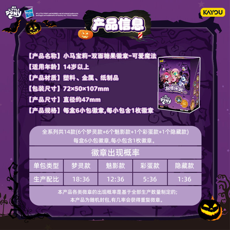 卡游小马宝莉双面糖果徽章可爱魔法系列吧唧磁吸谷子多种玩法玩具