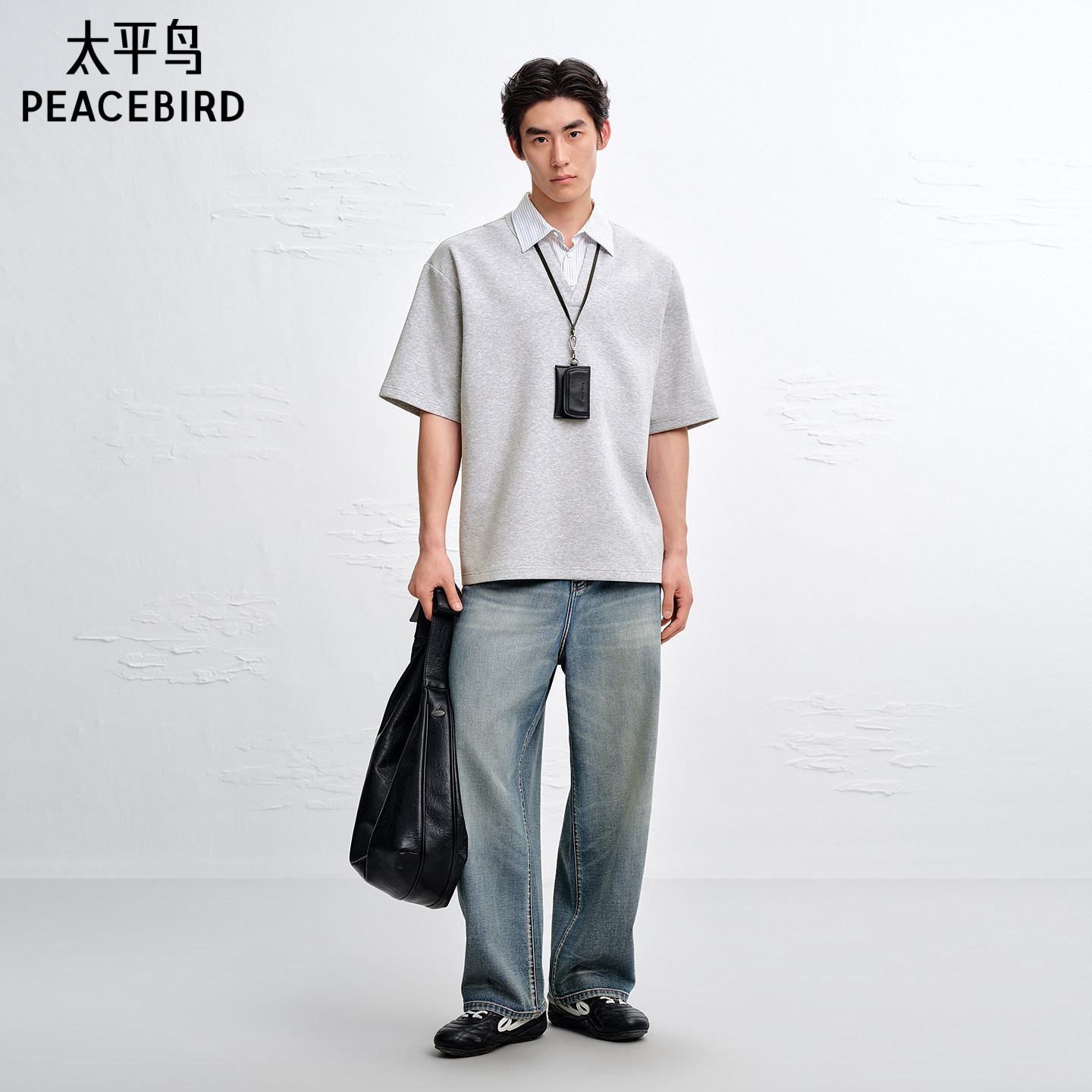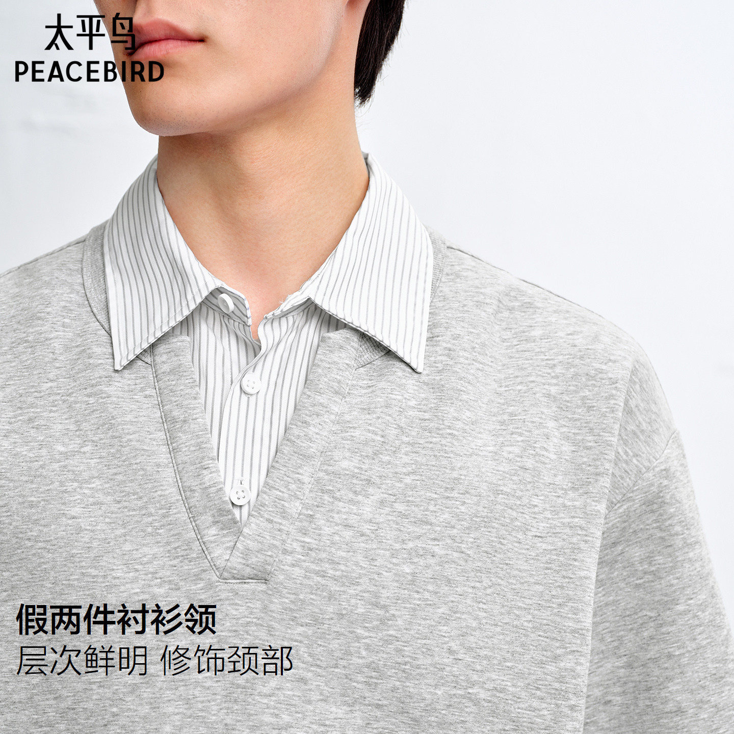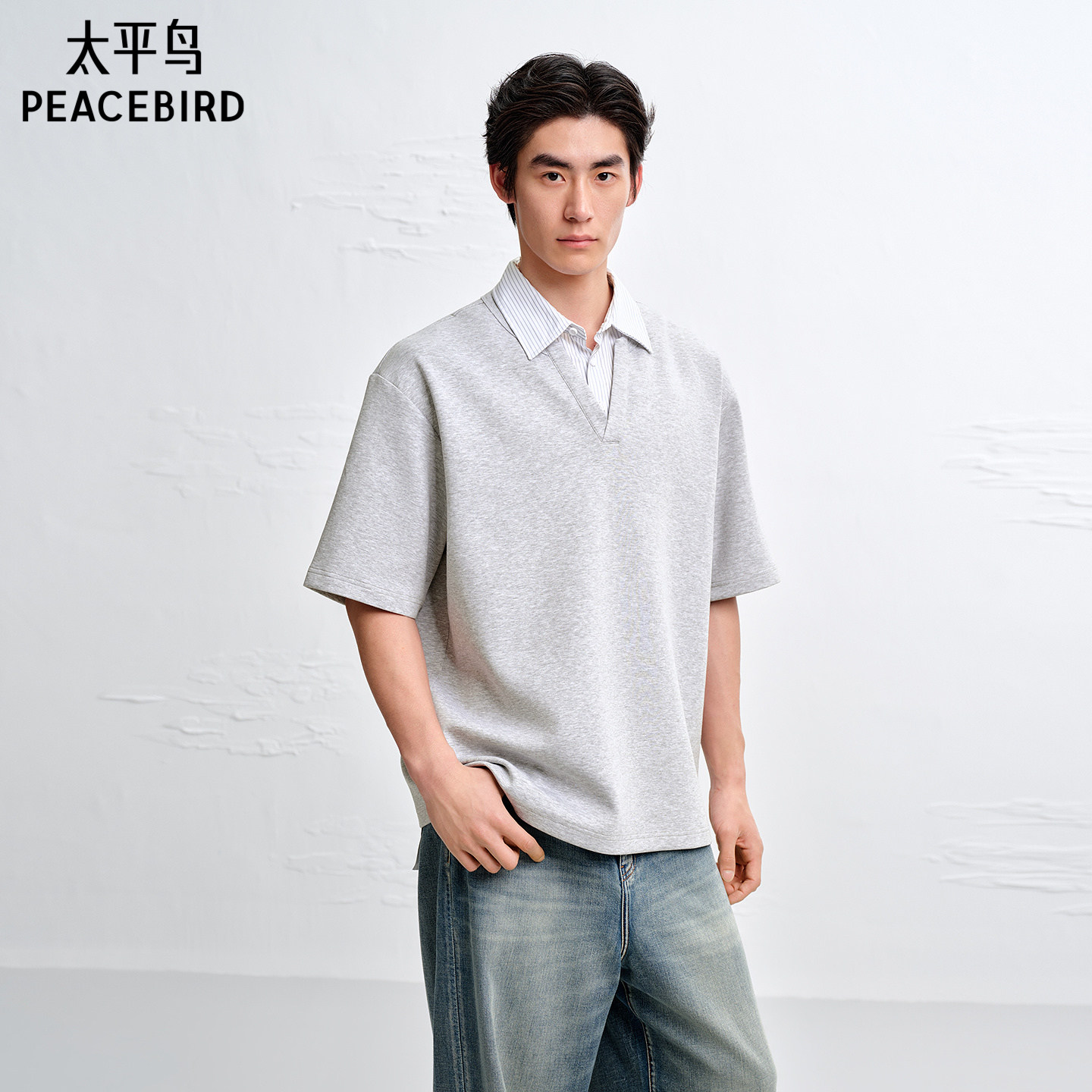 太平鸟男装 假两件polo衫男2026年夏季新款宽松衬衫翻领短袖t恤男