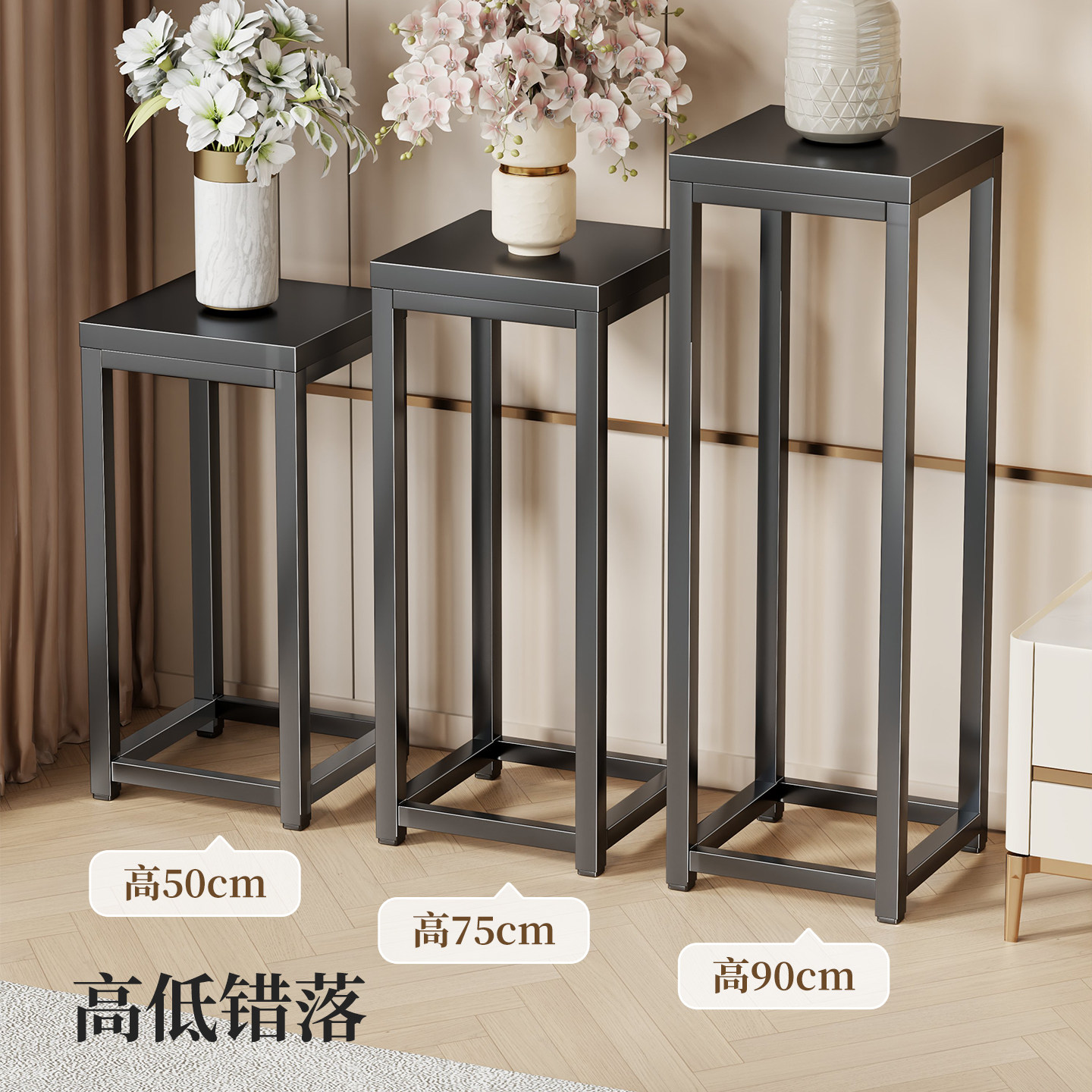 花架子客厅落地式多层花盆置物架玄关室内绿植托架铁架轻奢方形