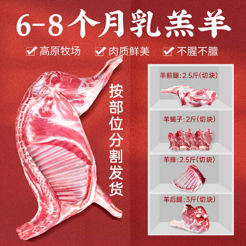 羊肉新鲜半只羊10斤羔羊生鲜羊肉羊腿羊排羊蝎子火锅食材年货礼盒