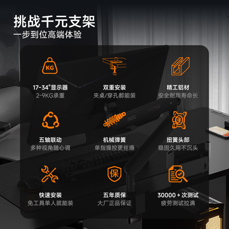 AOC显示器支架机械臂AM400P电脑显示屏幕升降悬臂底座 双屏二合一