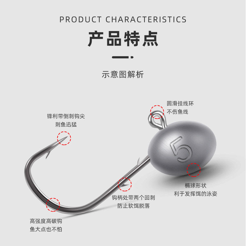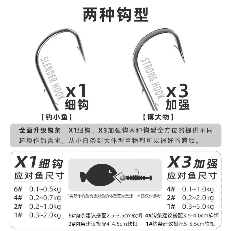 路亚根钓钩微物铅头钩微铅慕斯达卷尾T尾软饵小号勾鳜鱼翘嘴假饵