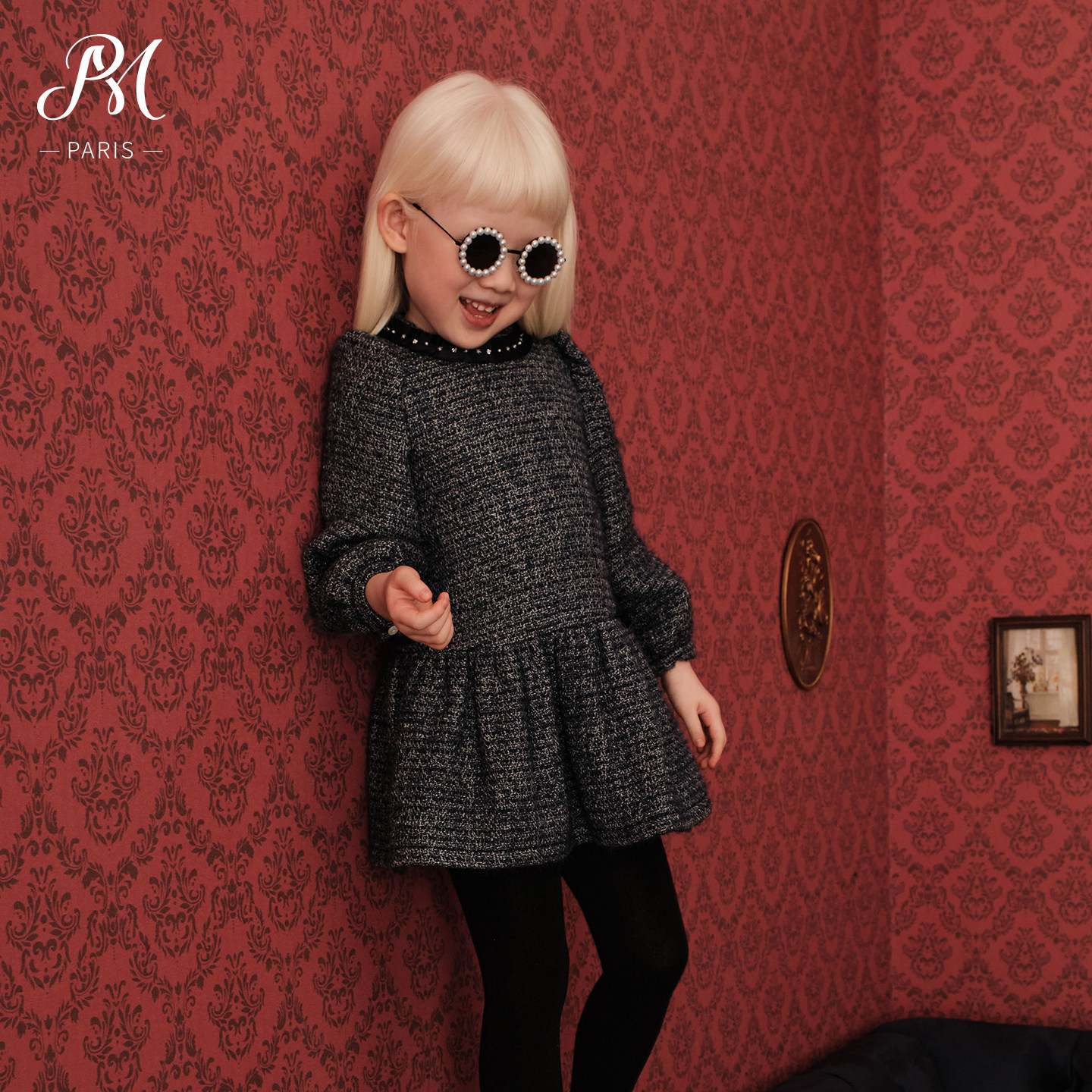 Petite Marguerite小雏菊童装·秋冬小香风千金藏青色花呢连衣裙